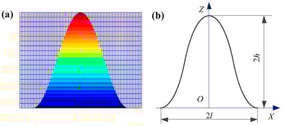 Figure 3 illustrates that the contour of the single asperity adheres to an axisymmetric sinusoidal shape. Therefore, the geometric shape of the asperity can be defined in a functional form, and the functional expression of the asperity contour can be obtained [41].