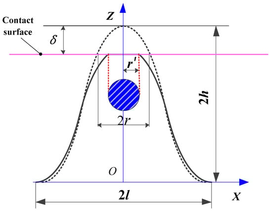 As a result of the redefined geometric shape of the single asperity, this section will undertake a revised exploration of the contact deformation mechanisms of the single asperity throughout the three deformation stages: elastic, elasto-plastic, and fully plastic. Figure 4 shows the contact diagram of the single asperity.