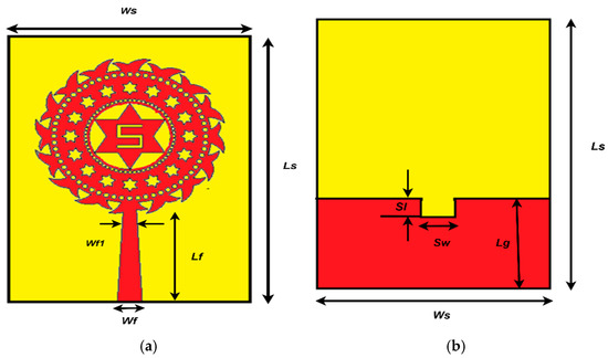 - Patel, U.; Upadhyaya, T.; Sorathiya, V.; Pandya, K.; Alwabli, A.; Dave, K.; Soliman, N.F.; El-Shafai, W. Split ring resonator geometry inspired crossed flower shaped fractal antenna for satellite and 5G communication applications. Results Eng. 2024, 22, 102110. [Google Scholar] [CrossRef]