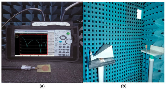 - Benkhadda, O.; Ahmad, S.; Saih, M.; Chaji, K.; Reha, A.; Ghaffar, A.; Khan, S.; Alibakhshikenari, M.; Limiti, E. Compact Broadband Antenna with Vicsek Fractal Slots for WLAN and WiMAX Applications. Appl. Sci. 2022, 12, 1142. [Google Scholar] [CrossRef]