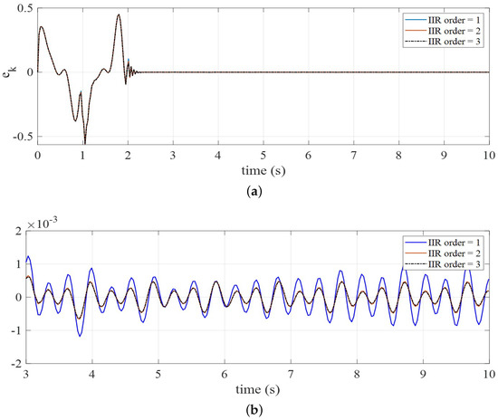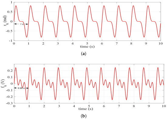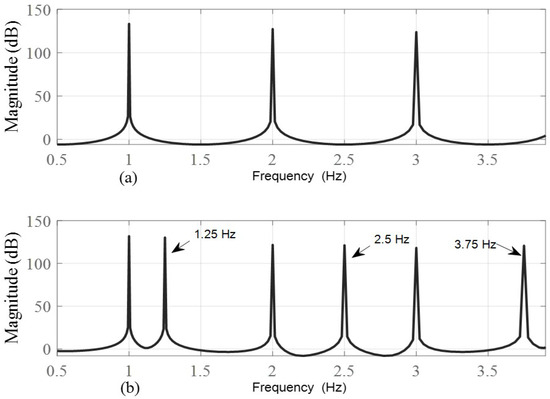 are the weights, and m is the highest order of RC. The higher-order-based RC aims to extend the high gains of the internal model to the neighboring region around the nominal targeted frequency (). Thus, higher-order-based RC can improve the trajectory-tracking performance at the neighboring frequencies, e.g.,