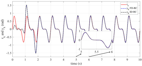 . The adaptive-based RC solution gives rise to system complexity and implementation due to the requirement to adjust the sampling period. Moreover, the adjustment in the sampling period will also change the dynamics of the discrete-time plant model. Other than adaptive-based RC, higher-order-based RC found in [17,18,19] was also presented to enhance the tracking performance of the systems under period variation. Instead of using one-period delay,