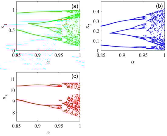 - Danca, M.F. Matlab code for Lyapunov exponents of fractional-order systems, part ii: The noncommensurate case. Int. J. Bifurc. Chaos 2021, 31, 2150187. [Google Scholar] [CrossRef]