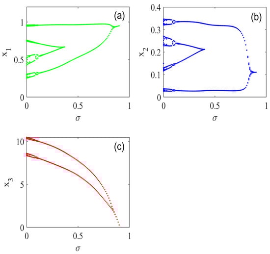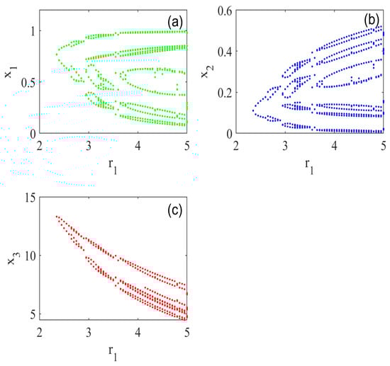 - Hastings, A.; Powell, T. Chaos in a three-species food chain. Ecology 1991, 72, 896–903. [Google Scholar] [CrossRef]