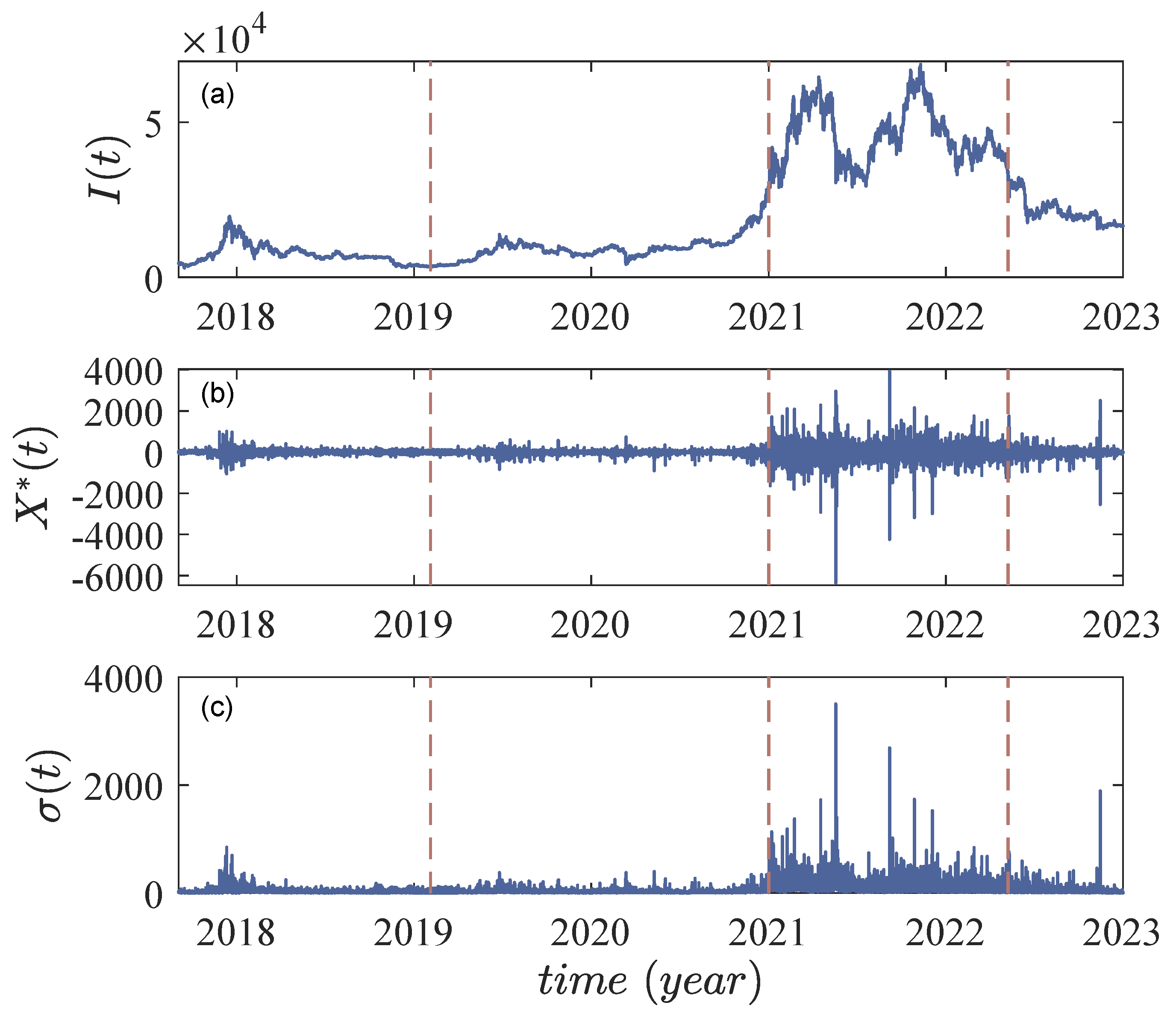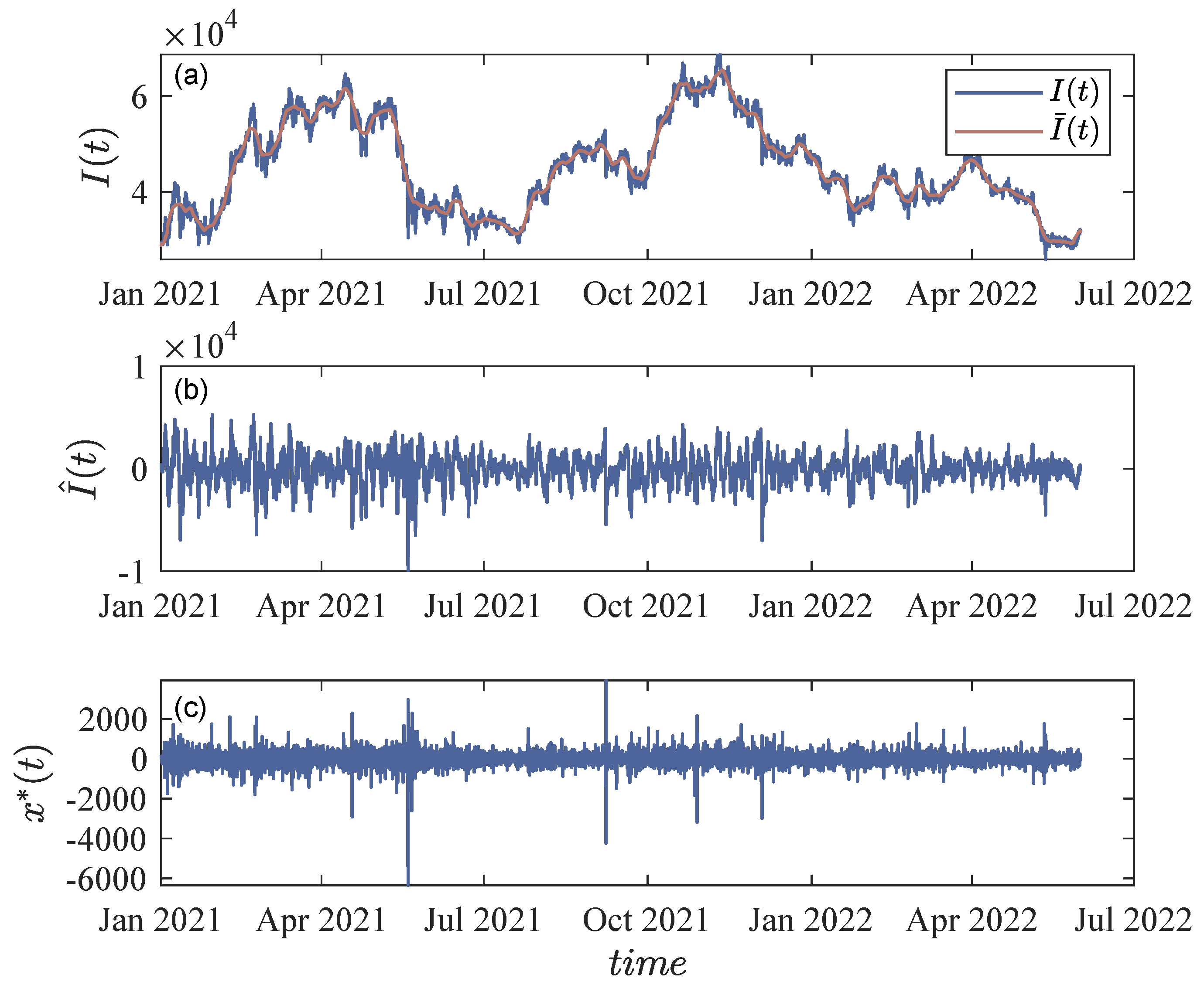 - Definitions and notation: Let be a market index. The simple price return from to isIn predictive models, is the current time and is the time where the price return is estimated. To simplify the notation, we assume . We work with detrended returns. Here, a deterministic trend means a smooth, low-frequency component (e.g., a moving-average) removed before analysis; the remaining stochastic noises are the zero-mean fluctuations captured by the stochastic dynamics introduced below. We therefore do not define separate variables for trend and noise. Define the simple price return as
