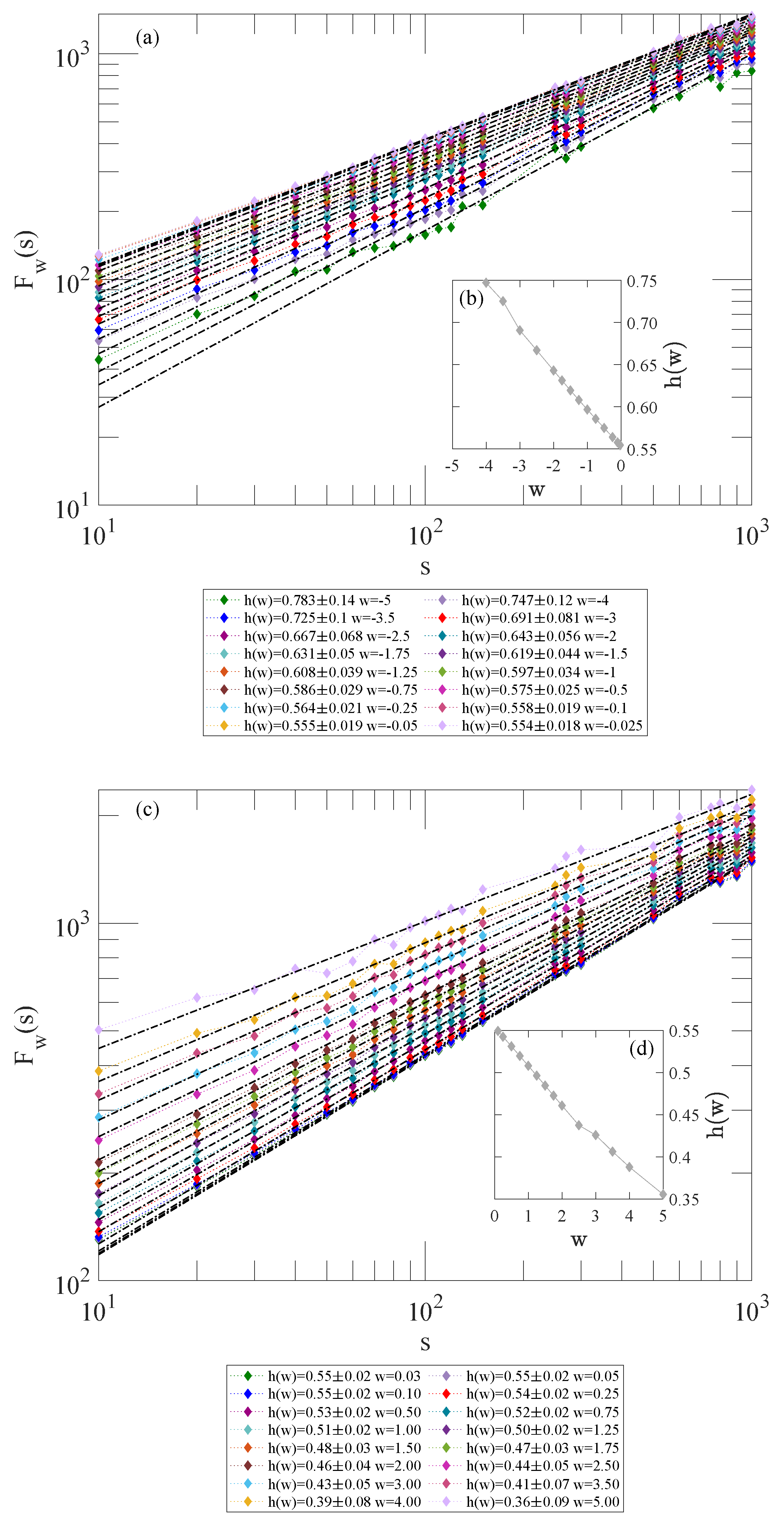 - Kantelhardt, J.W.; Zschiegner, S.A.; Koscielny-Bunde, E.; Havlin, S.; Bunde, A.; Stanley, H.E. Multifractal detrended fluctuation analysis of nonstationary time series. Phys. A Stat. Mech. Its Appl. 2002, 316, 87–114. [Google Scholar] [CrossRef]