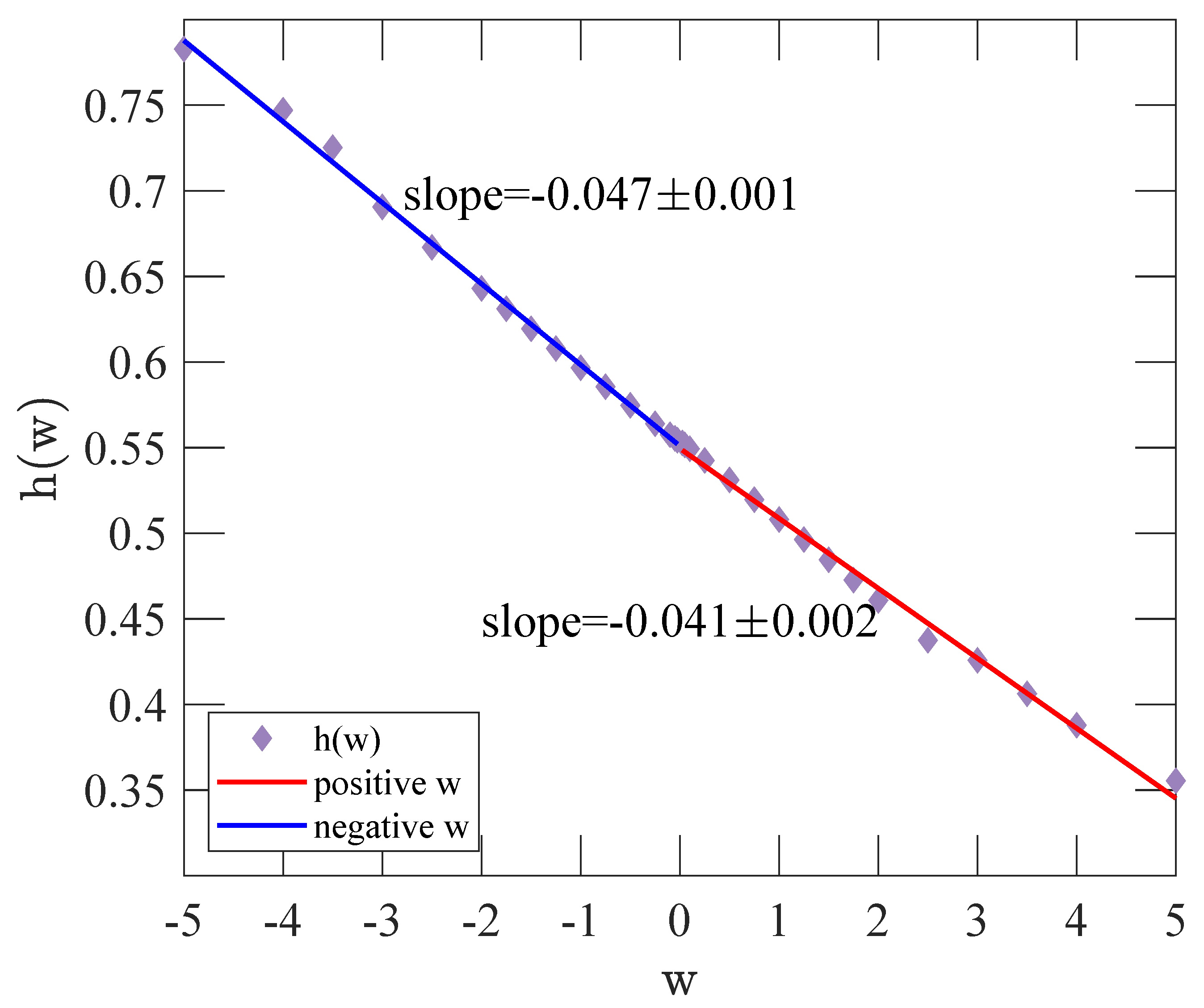 - Anomalous diffusion and PDF peak: If the PDF obeys the scaling ansatz [5]For Gaussian diffusion, (). At , , hence with a symmetric peak at 0,The following hyperscaling relation is obtained for local operators [27].More general hyperscaling relations are derived using a non-local operator [3].