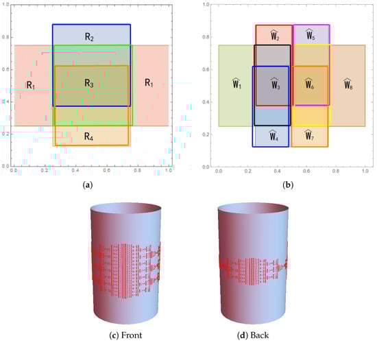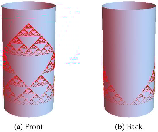 Fractals in Riemannian manifolds, especially in Lie groups, Heisenberg groups, and projective spaces, have been studied extensively by many authors (see Strichartz [], Balogh and Tyson [], Barnsley and Vince [], Hossain et al. [,], etc.). A basic theory of iterated function systems (IFSs) on Riemannian manifolds, including Hausdorff dimension, the weak separation condition (WSC), and the finite type condition (FTC), was established by Xu and the second author []. In [], a method for computing the Hausdorff dimension of a certain fractal set in a flat torus is obtained; the fractal set can be identified with the attractor of some IFS on . However, this method is too cumbersome and is not easy to generalize. The purpose of this paper is to establish a new method that can be used to calculate the Hausdorff dimensions of more general fractal sets in Riemannian manifolds. Unlike fractal sets in , many interesting fractals in Riemannian manifolds cannot be described by an IFS. For example, the relations generating a Sierpinski gasket on a cylinder can be multivalued (see Example 4). Thangaraj et al. [] studied fractals generated by multivalued functions in a metric space. Cui et al. [] studied measures generated by nonautonomous iterated function systems consisting of expansive maps. Unlike mappings in these papers, relations that generate fractals considered in the present paper can be multivalued and expansive at the same time. To deal with the problem that the maps (or more precisely, relations) generating a fractal are multivalued and non-contractive, we introduce the notion of iterated relation systems (IRSs) (see Definition 1). We show that many interesting fractals can be described naturally by IRSs.