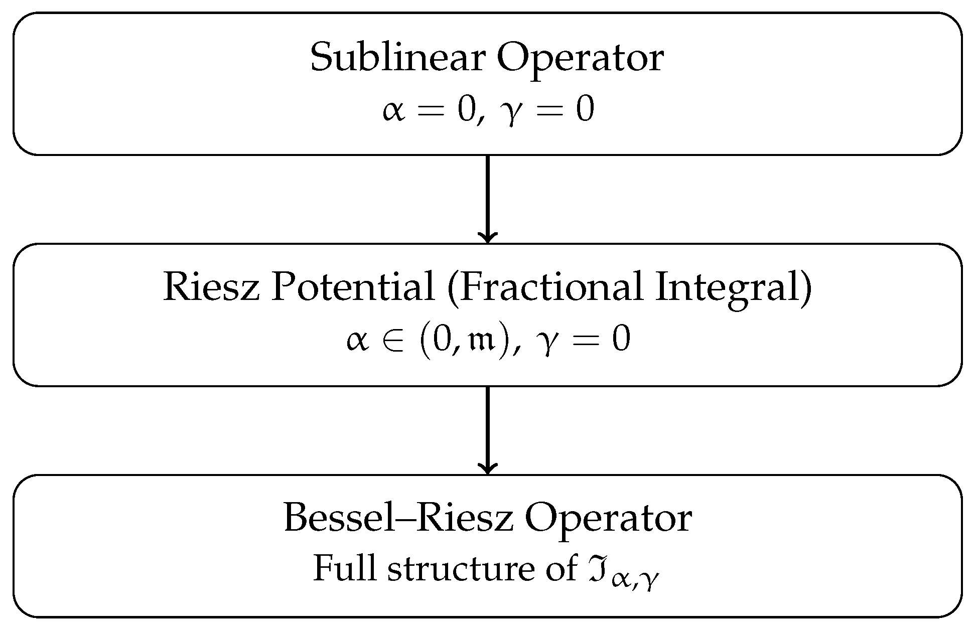 - Bessel–Riesz operator:When , the operator becomes the classical Bessel–Riesz potential:which improves the decay at infinity and appears in various potential-theoretic contexts [54].
