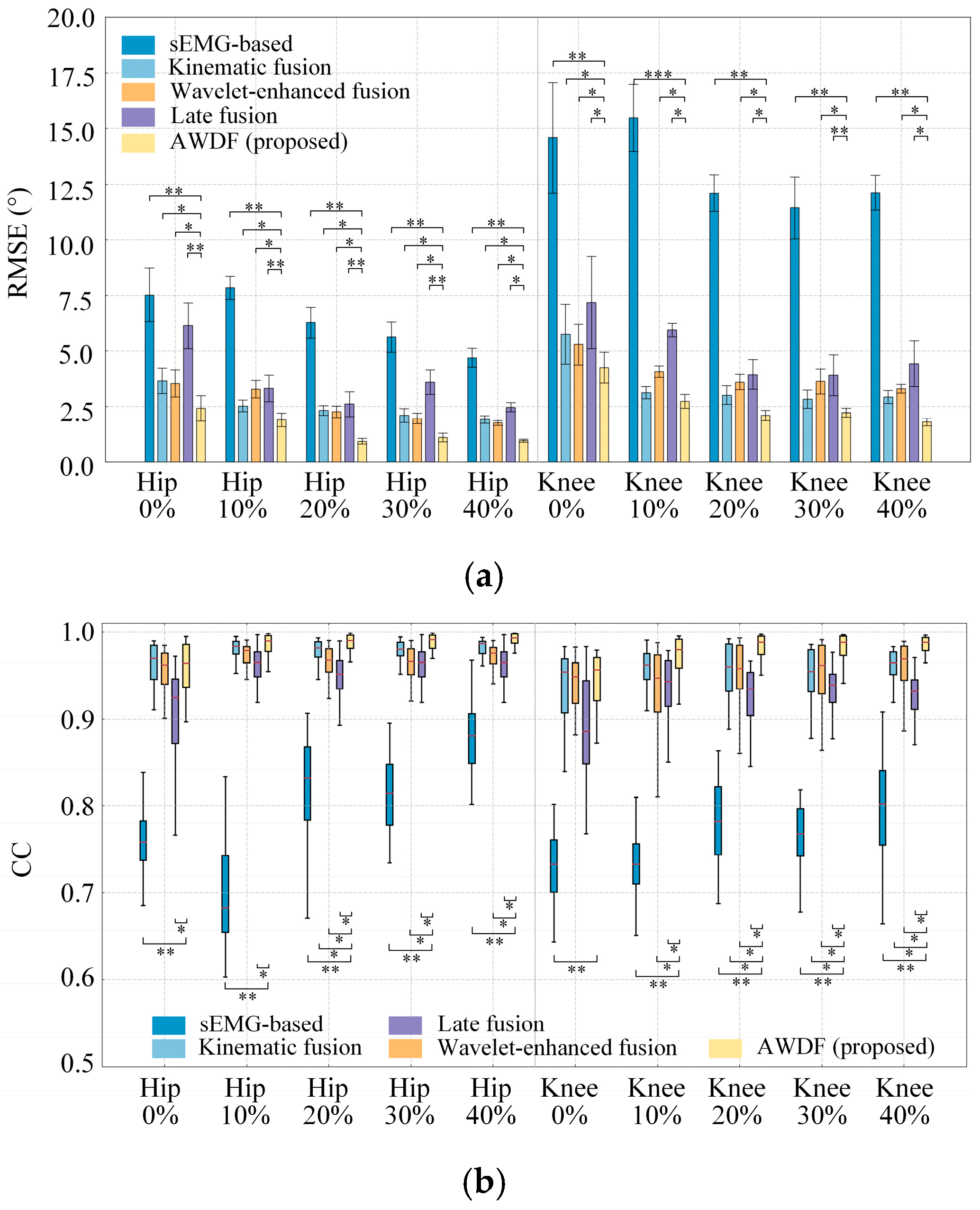 39. Sun, N.; Cao, M.; Chen, Y.; Chen, Y.; Wang, J.; Wang, Q.; Chen, X.; Liu, T. Continuous Estimation of Human Knee Joint Angles by Fusing Kinematic and Myoelectric Signals. IEEE Trans. Neural Syst. Rehabil. Eng. 2022, 30, 2446–2455. [Google Scholar] [CrossRef]