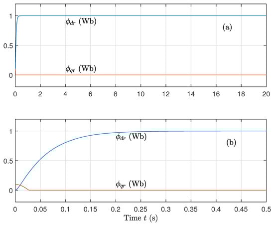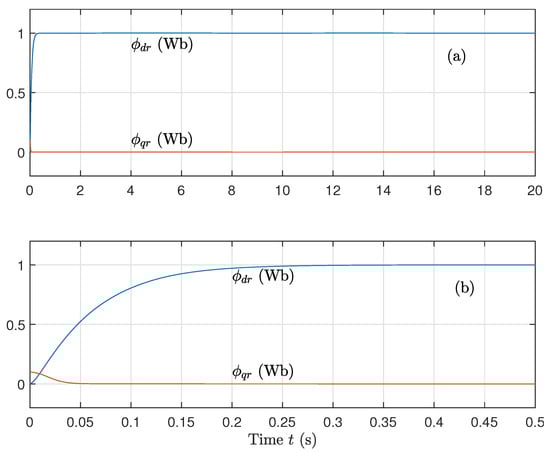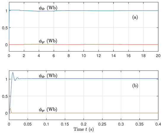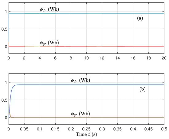 (a) Direct flux component and (b) Quadrature flux component, for well-known parameters using the sat function on the control.