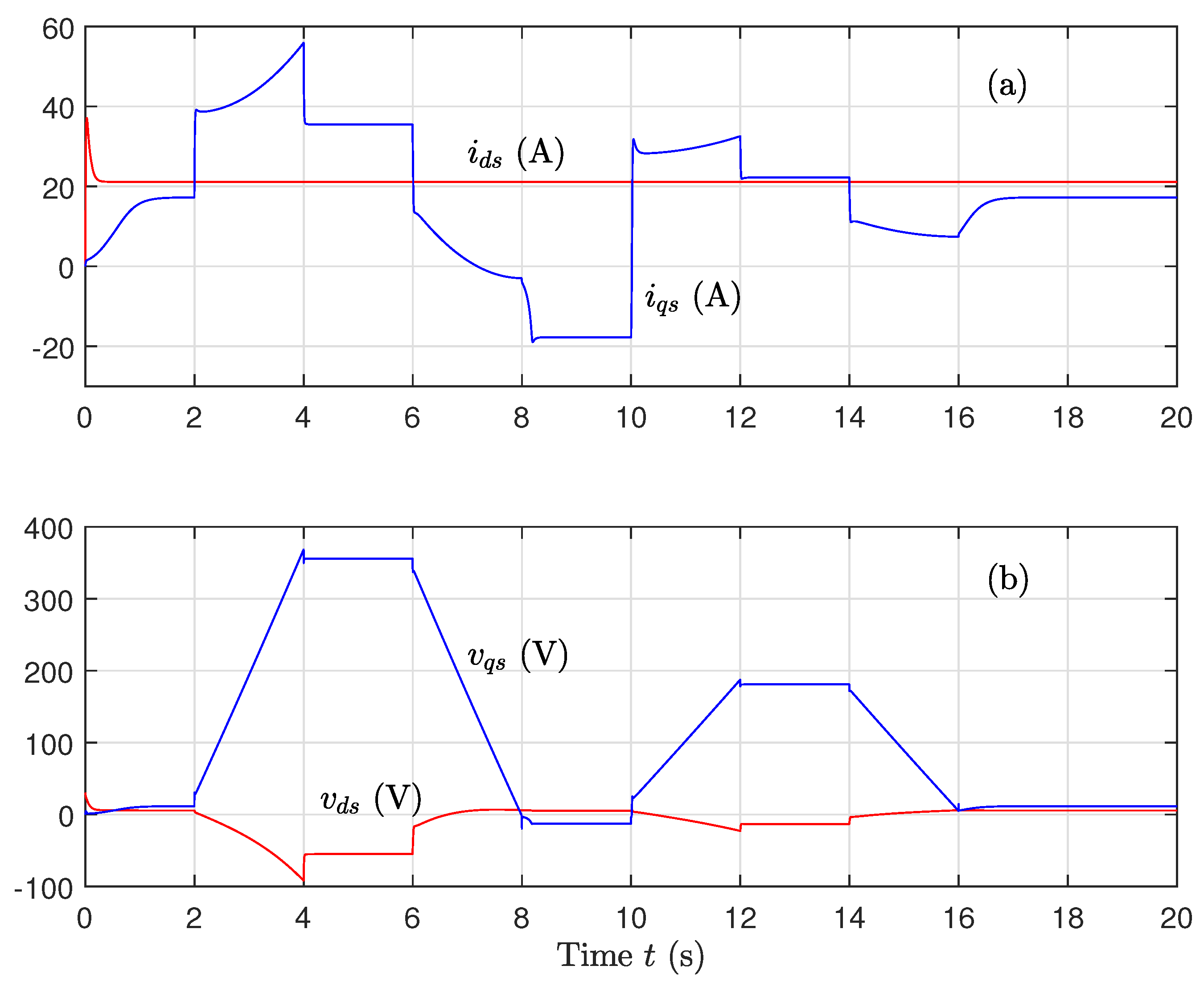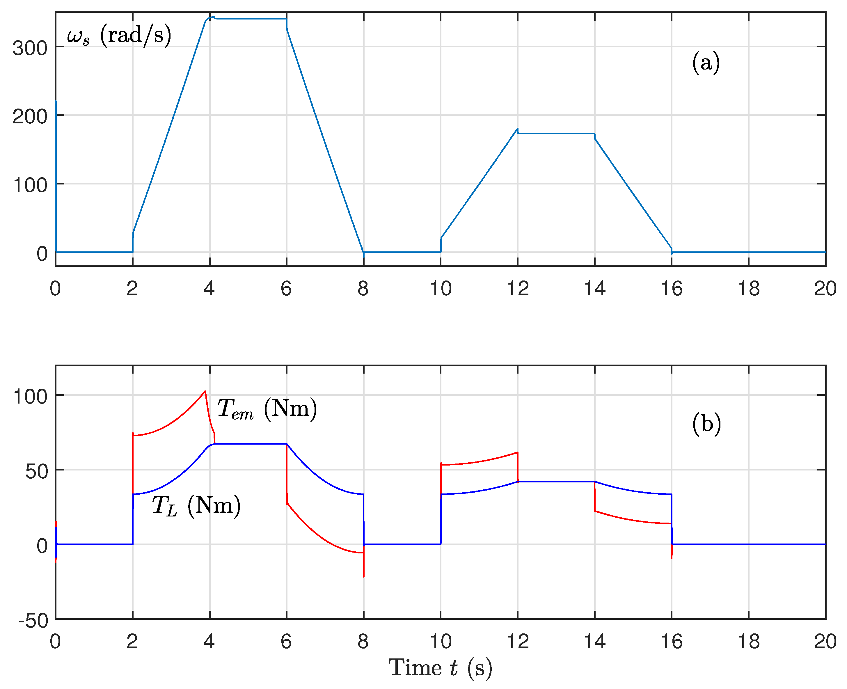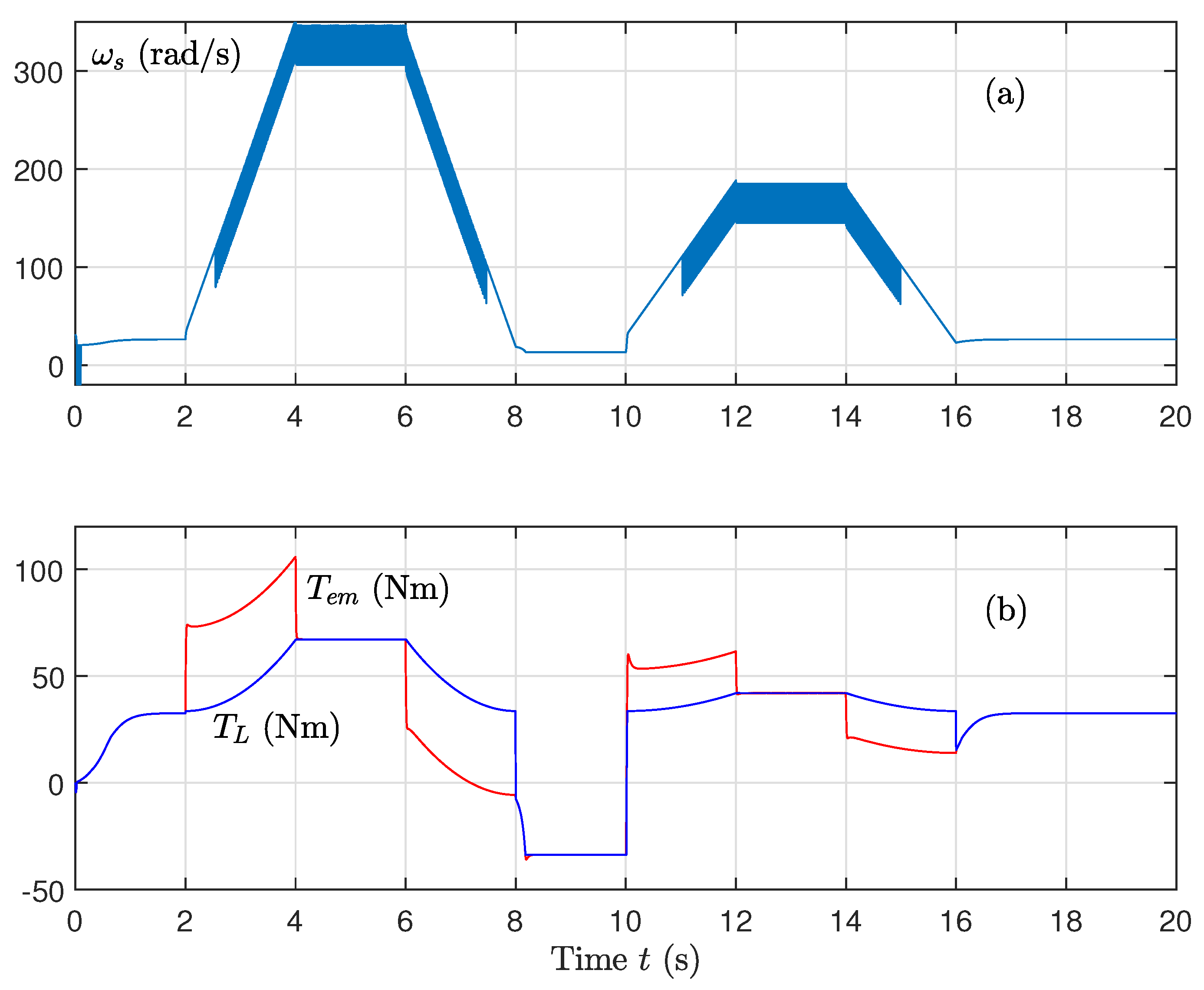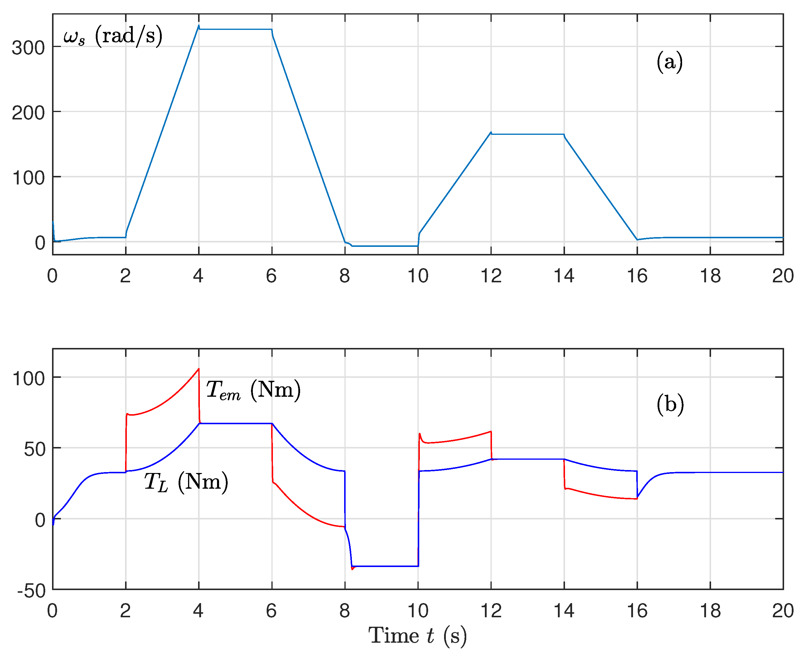 - Control of the machine speed is calculated as follows:The error quantities , , and are expressed as follows: