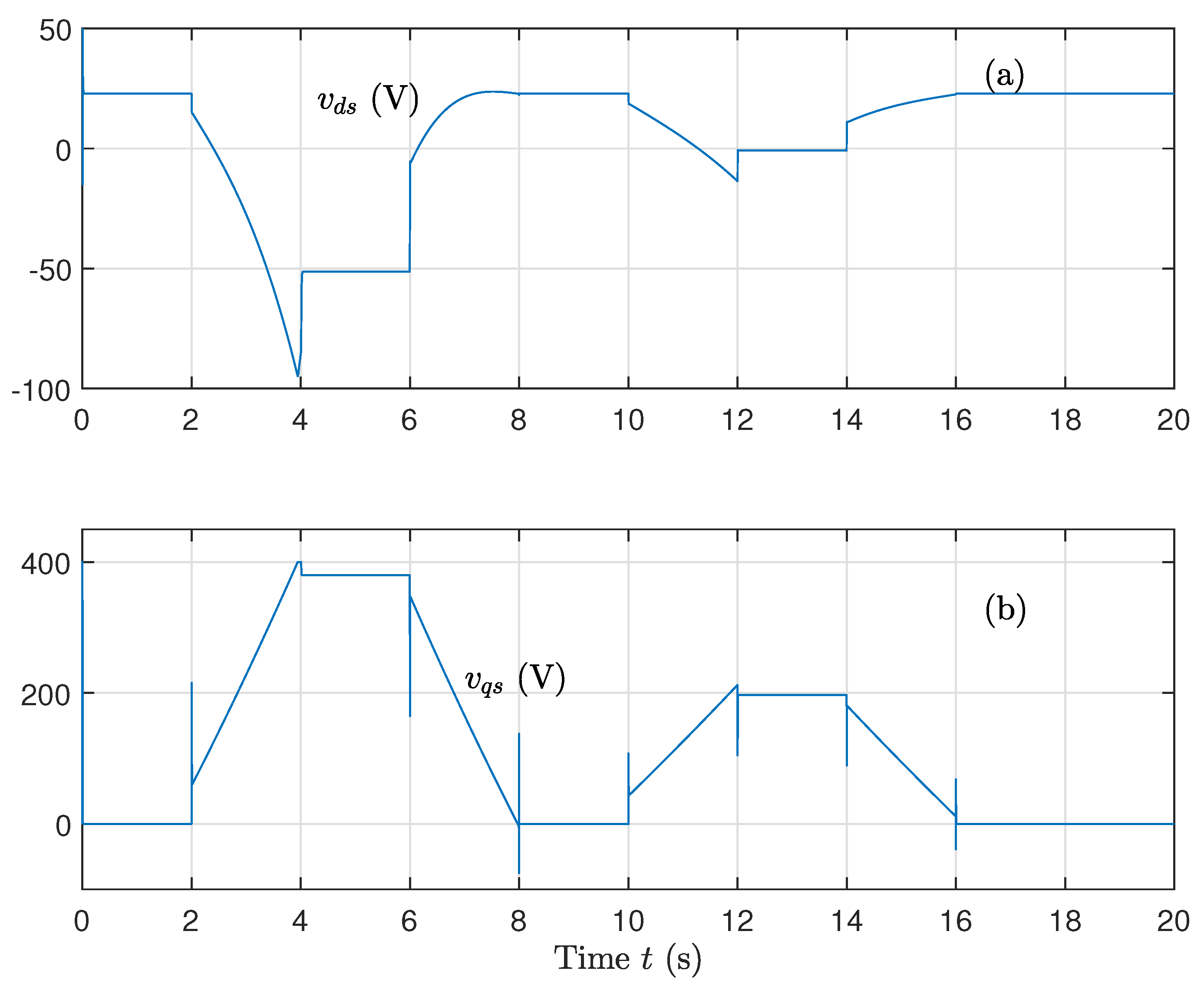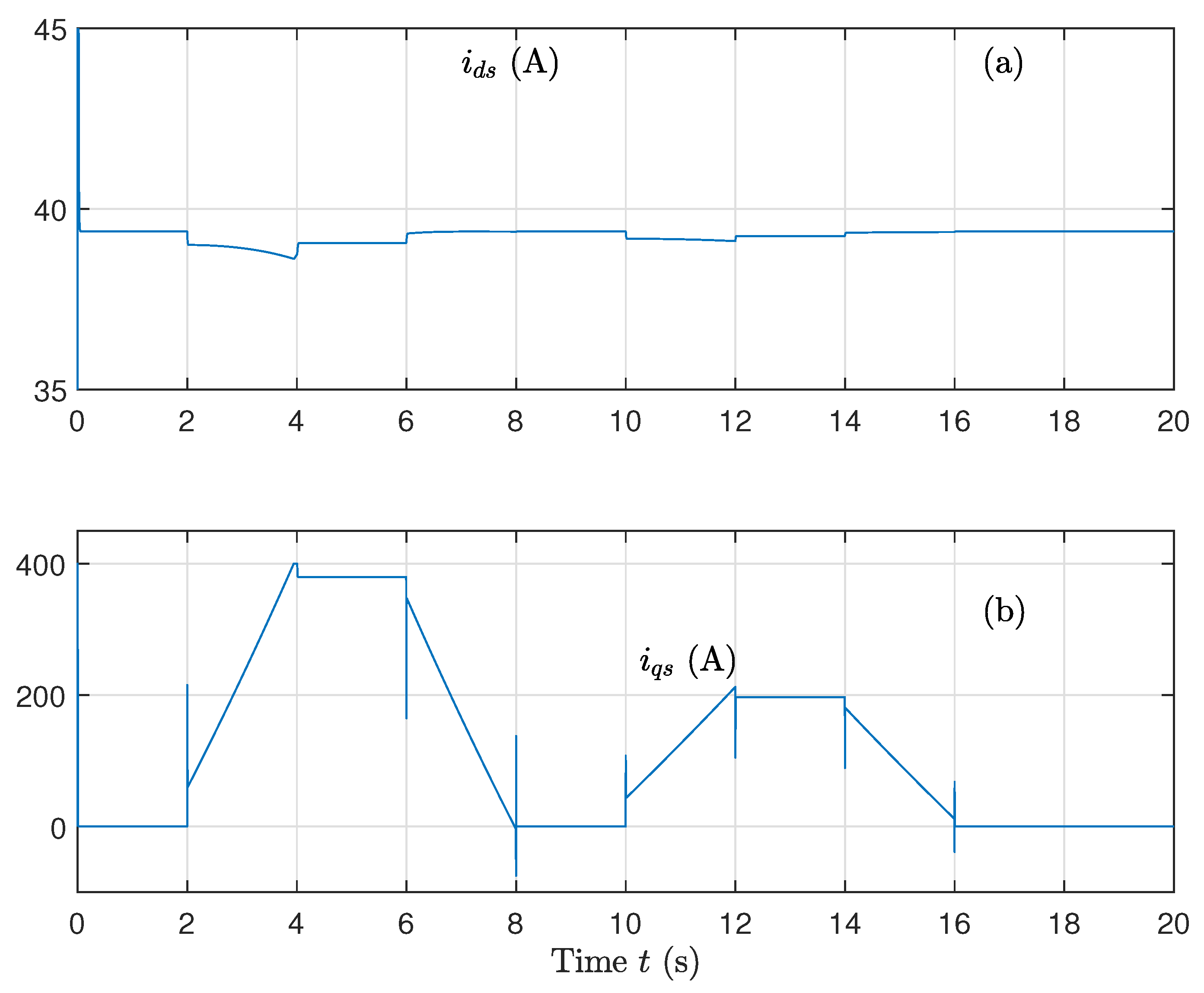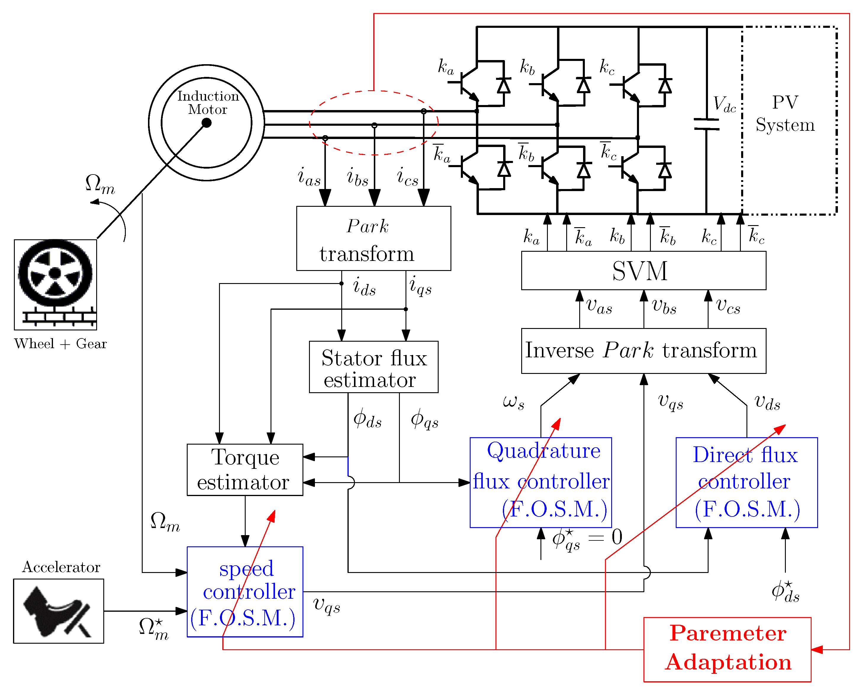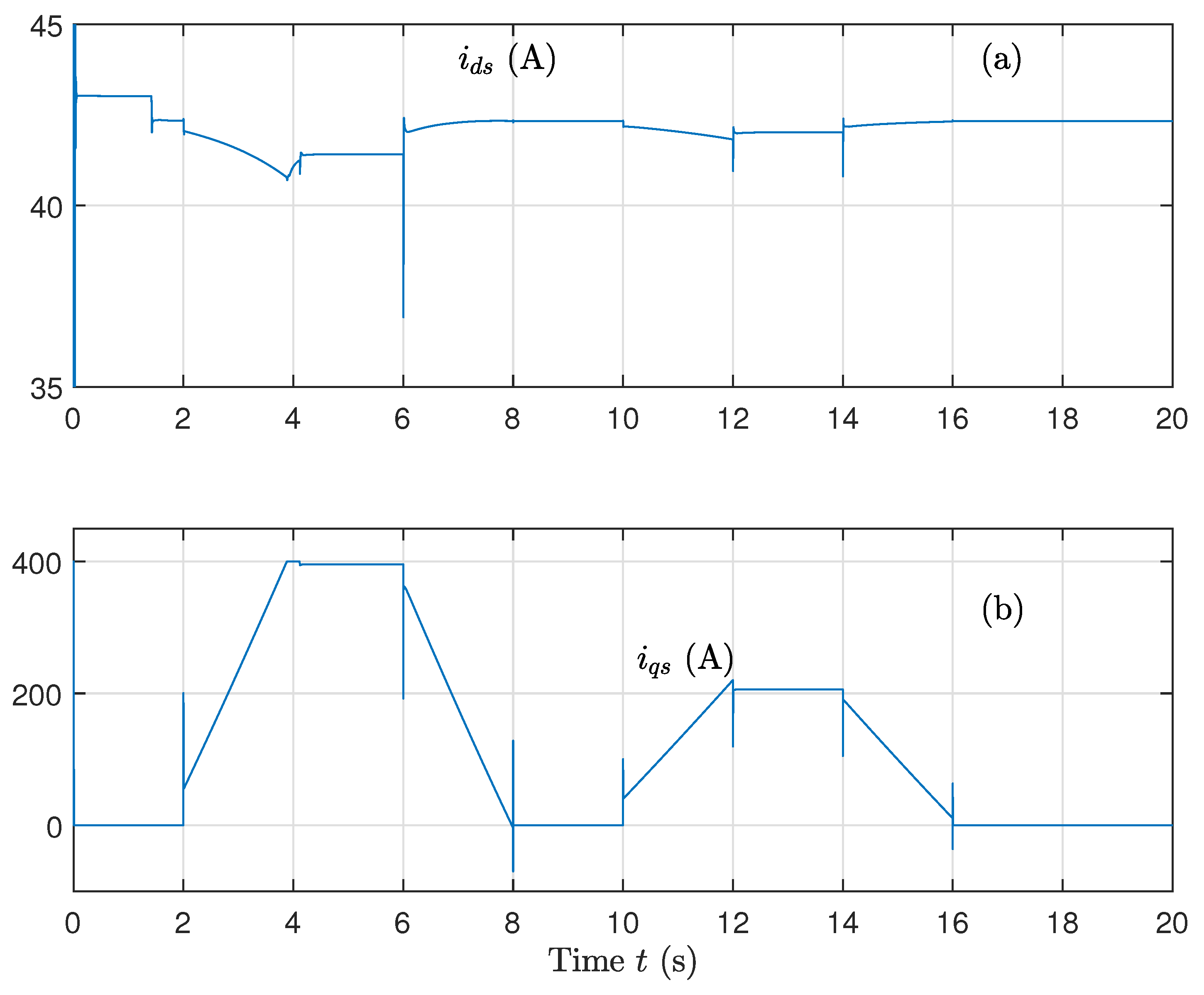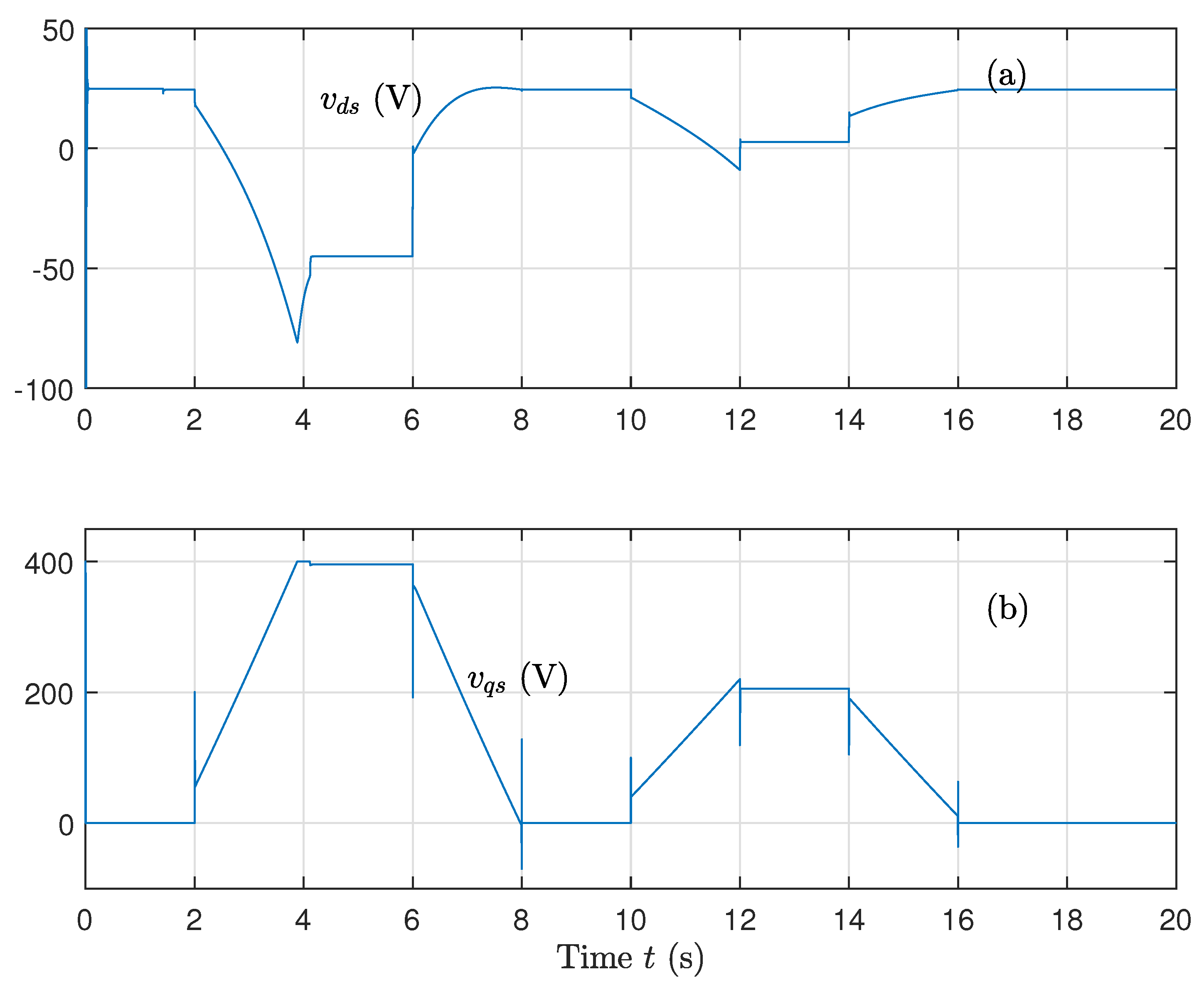 - Control of the machine speed is calculated as follows:The error quantities , , and are expressed as follows: