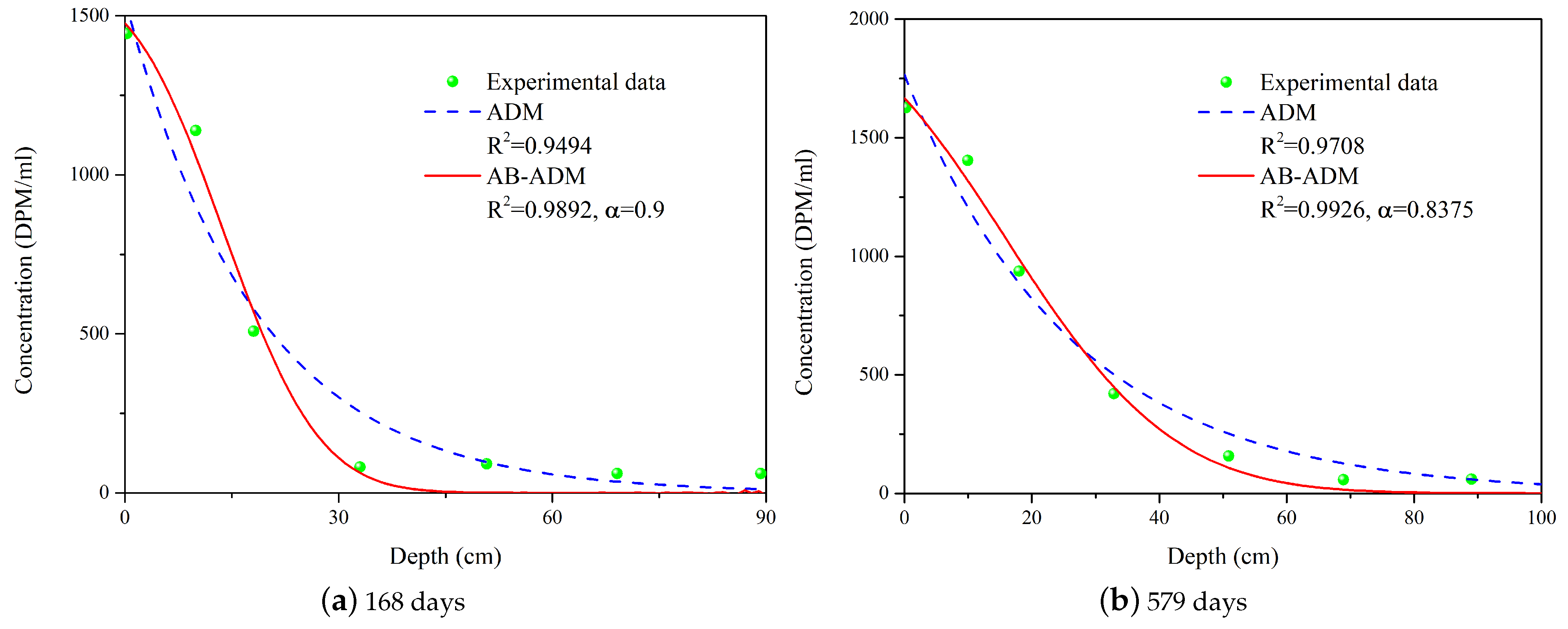 APA StyleYang, S., Wei, Q., Xie, S., Zhou, H., & An, L. (2025). Time-Fractional Differential Operator Modeling of Contaminant Transport with Adsorption and Decay. Fractal and Fractional, 9(10), 671. https://doi.org/10.3390/fractalfract9100671