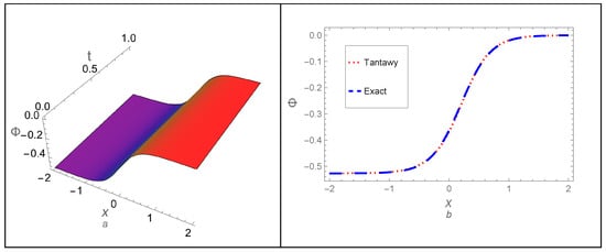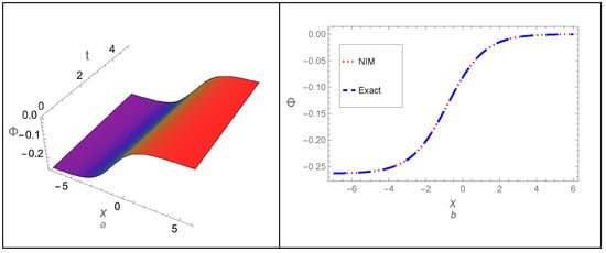 Now, we initially compare the derived approximations (60) and (75) with the exact solution (50) at to validate the precision of these approximations as illustrated in Figure 4 and Figure 5, respectively. In addition, the MVRR for the derived approximations (60) and (75) is estimated throughout the study domain & & as follows: