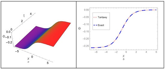 Plasma physics is recognized as one of the most fertile physical disciplines, encompassing a wide range of nonlinear phenomena, including the propagation of solitary waves, shock waves, rogue waves, periodic waves, and many others. All these phenomena are nonlinear and can be explained by reducing the fluid equations for any plasma system into one of the wave equations, which can describe many of the nonlinear structures mentioned earlier, as well as others. For example, we consider an electron-depleted, unmagnetized, collisionless plasma consisting of inertial negatively charged dust grains and inertialess nonextensive ions []. Thus, the neutrality condition is expressed as , where denotes the charge number of electrons that reside on the surface of the dust grains, while and signify the unperturbed number densities of the dust grains and ions, respectively. This model presents the dimensionless fluid equations that regulate the nonlinear dynamics of low-frequency dust-acoustic waves as follows: