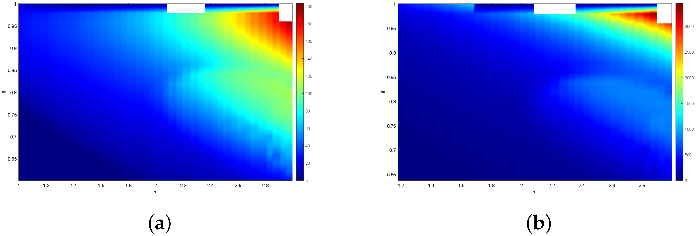 Figure 6 delineates their combined influence on the state amplitudes. The depth of the color bar indicates the amplitude of the system after the periodic oscillation occurs, and the dark blue indicates that the system remains stable and does not oscillate. Crucially, it unveils a chaotic window
