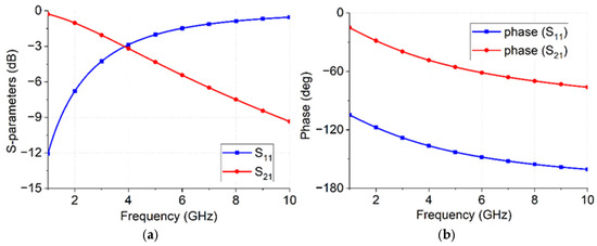 Simulation results of the ports. (a) S parameter, (b) phase.