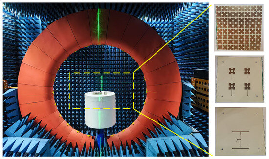 Figure 14 shows the processing of the array antenna for experimentally verifying its accuracy. A network analyzer was used to measure the S11 of the array antenna, and its radiation characteristics were measured in an anechoic chamber. The measured platform is shown in the figure.