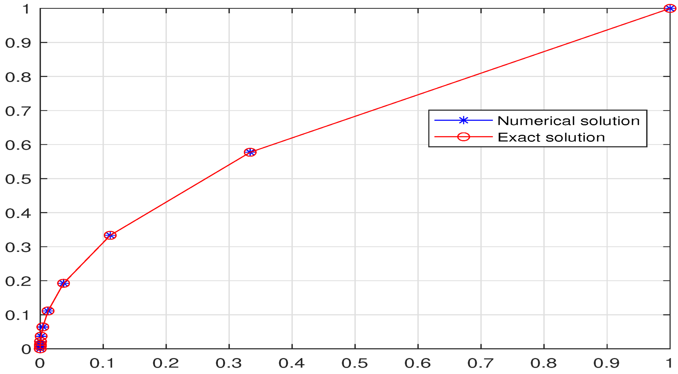 - Solution Phase: The predictor–corrector scheme is executed sequentially across the grid points. At each step , the algorithm utilizes the precomputed coefficients and previously calculated solution values to efficiently compute and through simple vector operations and function evaluations.