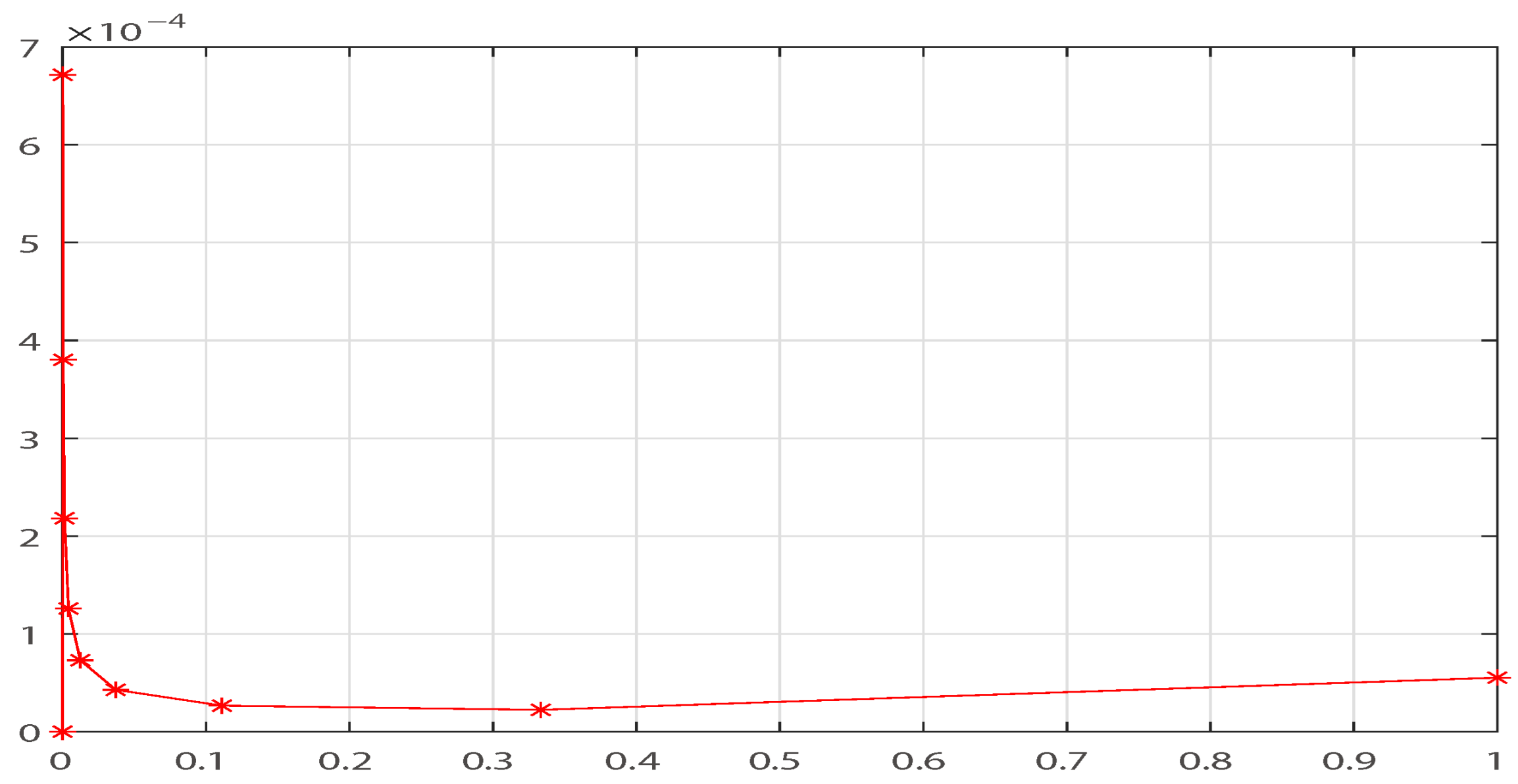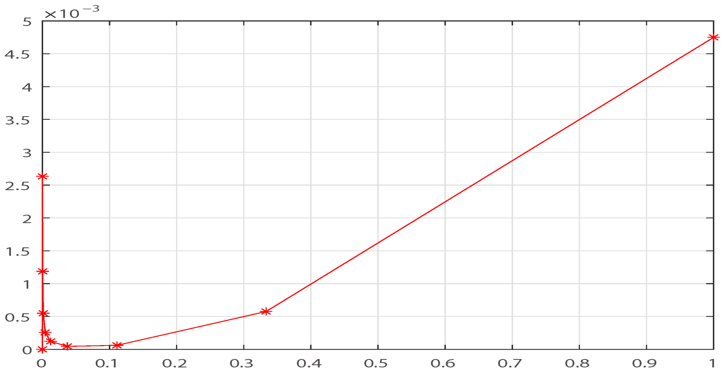 - Coefficient Pre-computation: The integration coefficients (Equation (49)) and (Equation (55)) are pre-calculated for all required indices using numerical quadrature. Specifically, we employ the composite trapezoidal rule adapted to the q-grid subintervals to approximate these integrals with sufficient accuracy.