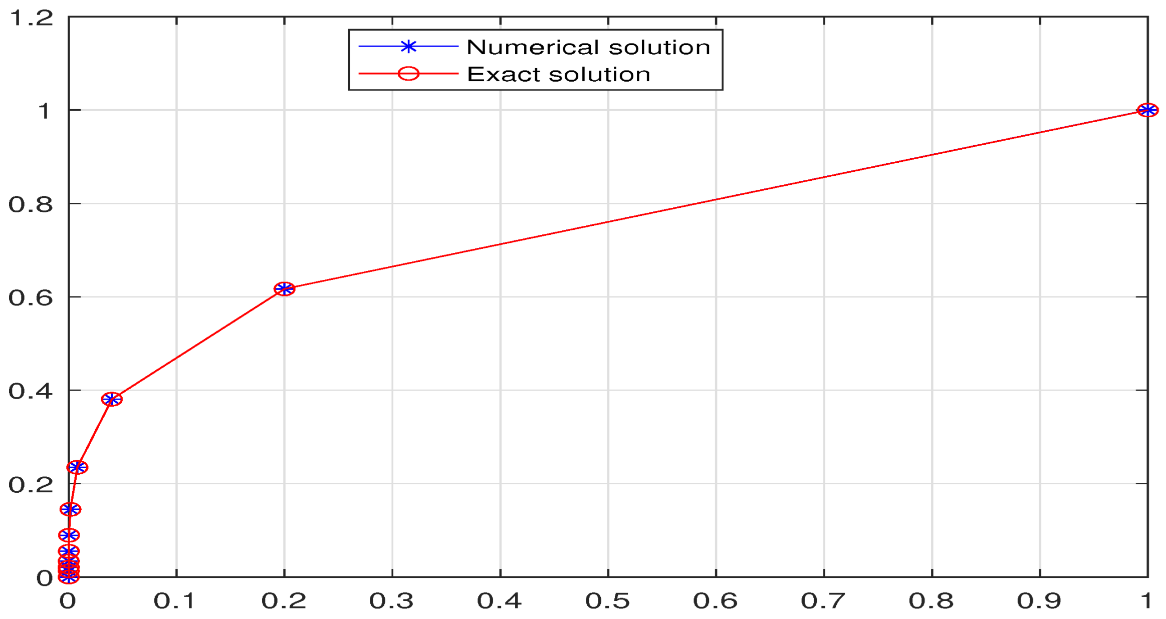 - Grid Generation: The computational domain is discretized using the q-grid defined by for , with in all examples. This creates a non-uniform partition that naturally adapts to the q-calculus framework, providing higher resolution near the right endpoint of the interval.