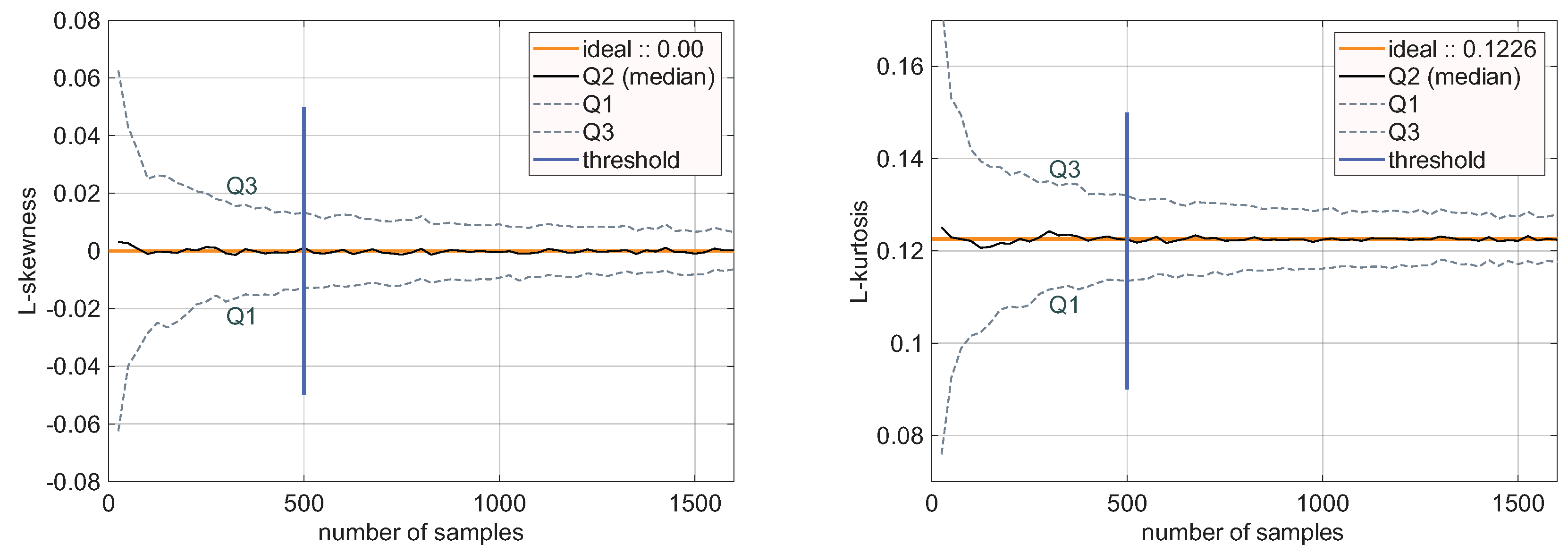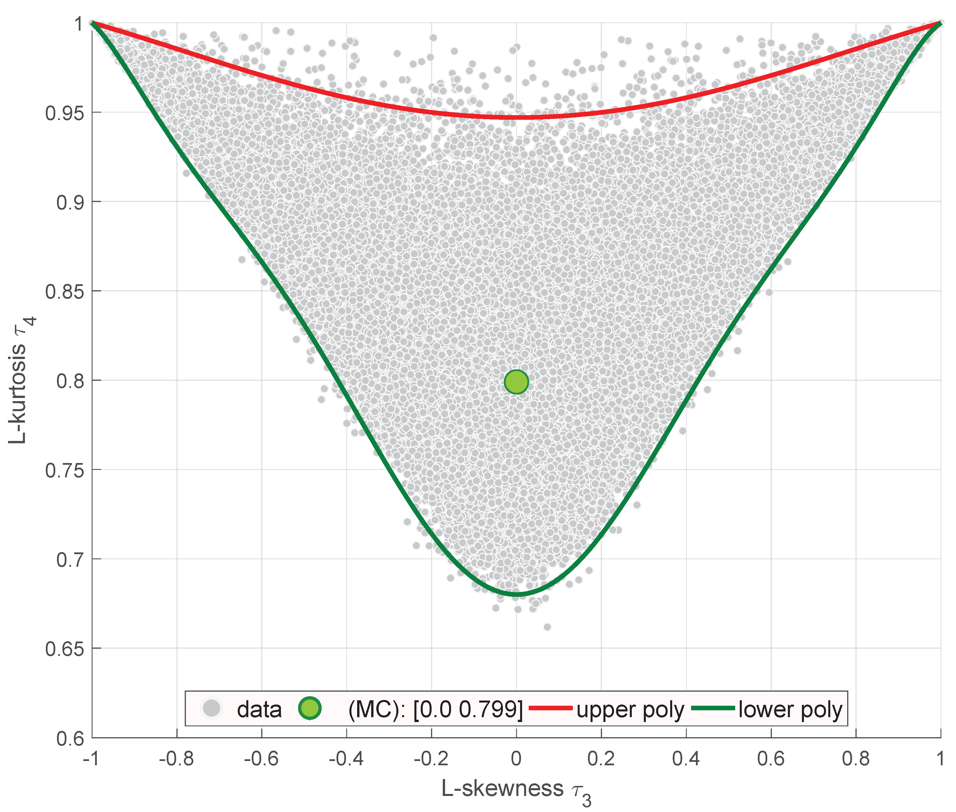 Figure 11 shows the estimated Monte-Carlo values of L-skewness and L-kurtosis: