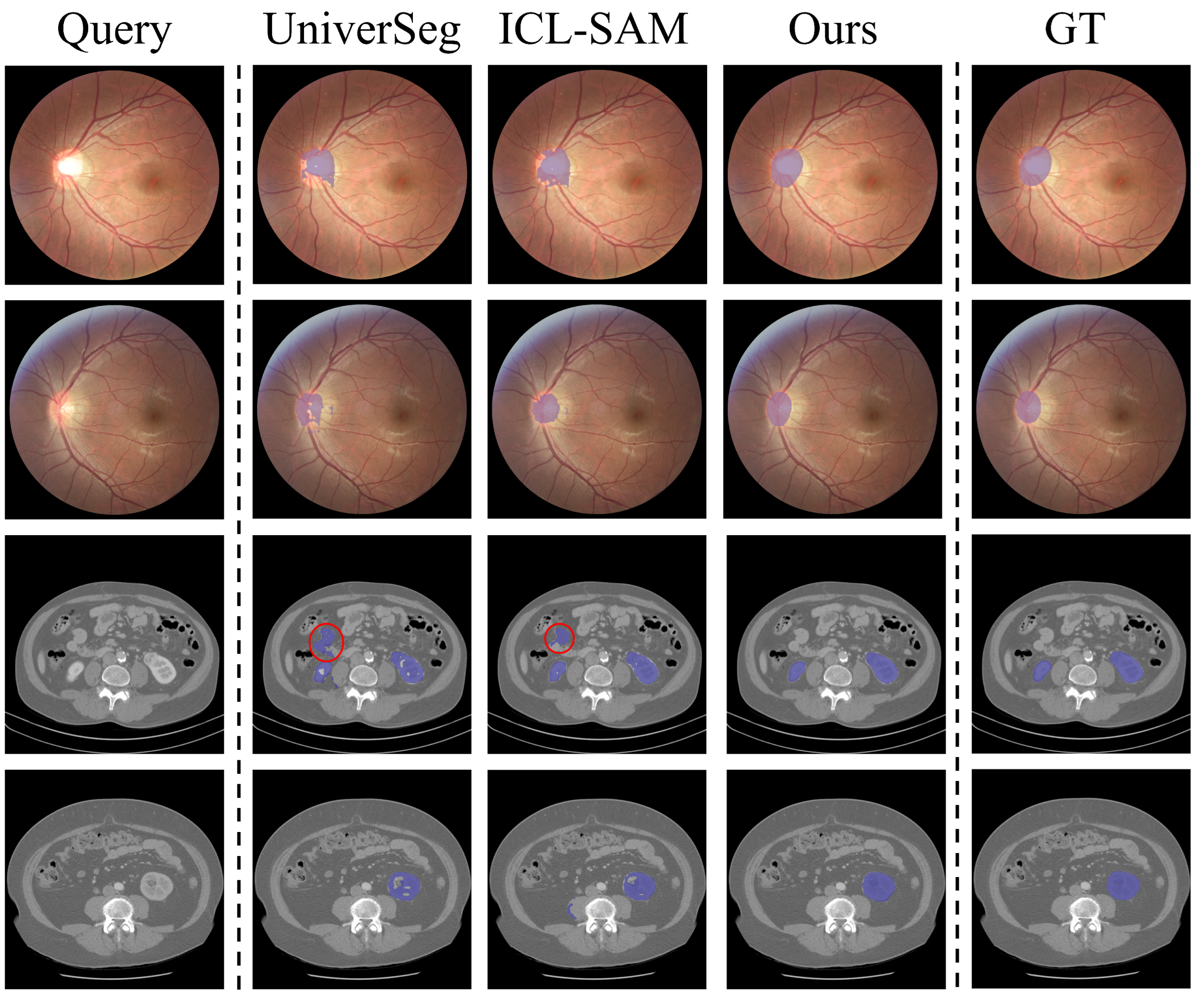 - We propose a novel VG-SAM method for universal medical image segmentation, which achieves deep integration of in-context learning with Segment Anything Model (SAM) and effectively addresses the performance degradation in unseen domains.