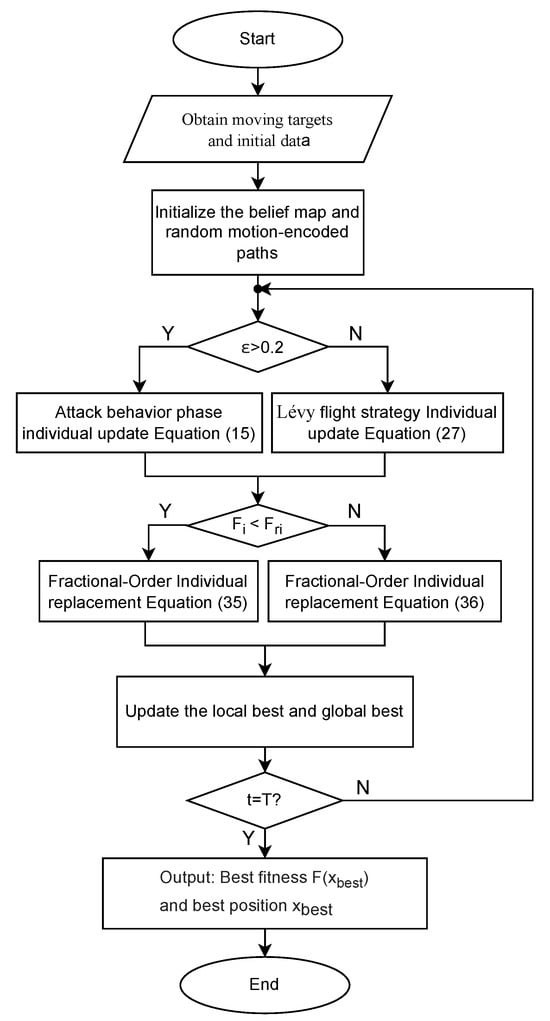 Setp 3. Individual position update stage: Update the individual’s movement encoding path by performing attack behavior using Equation (15) or Equation (27) and performing fractional migration behavior using Equation (35) or Equation (36).