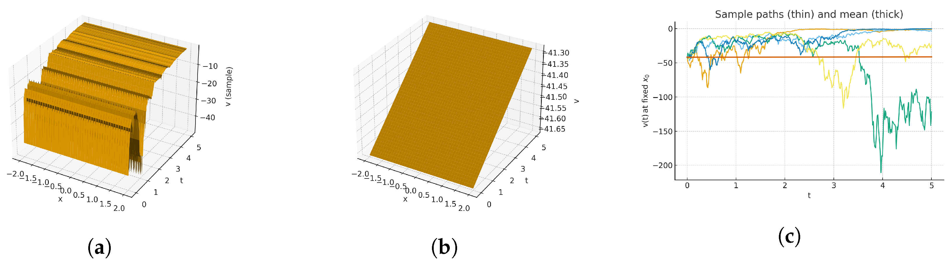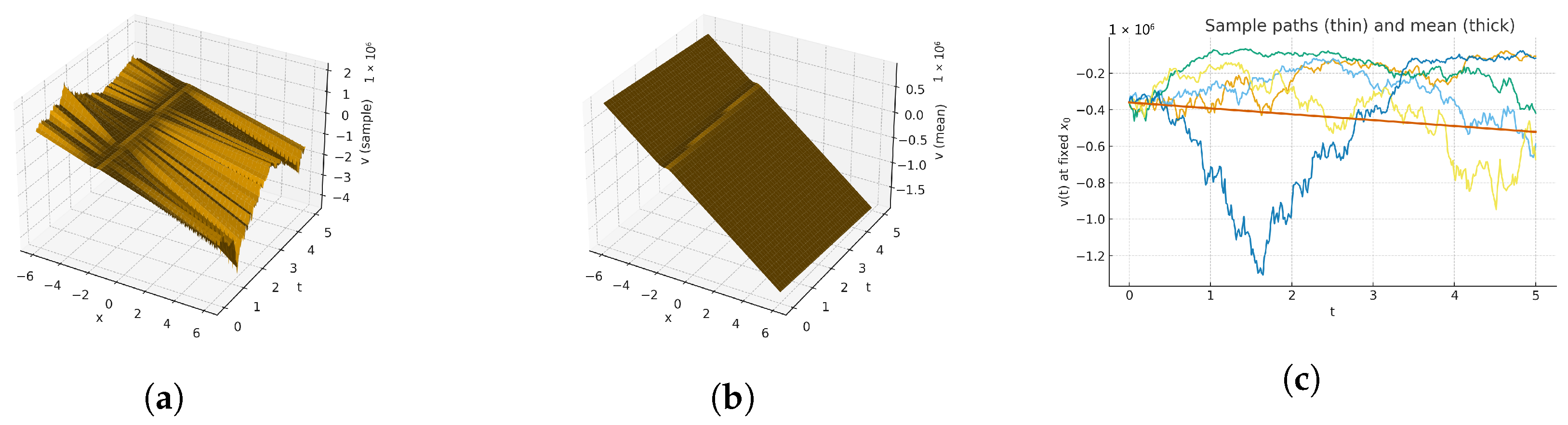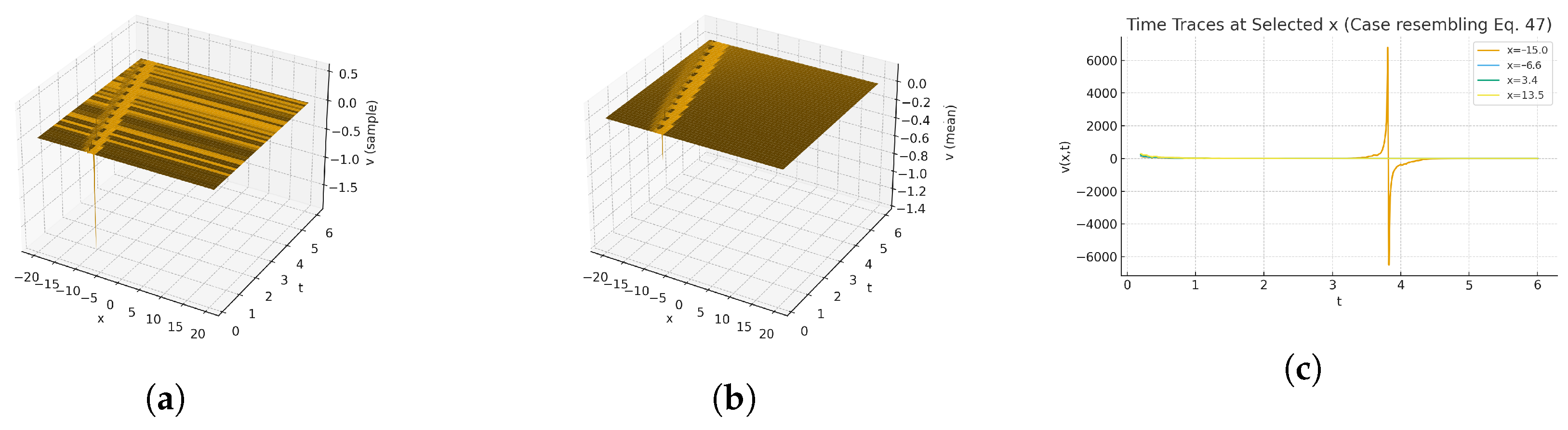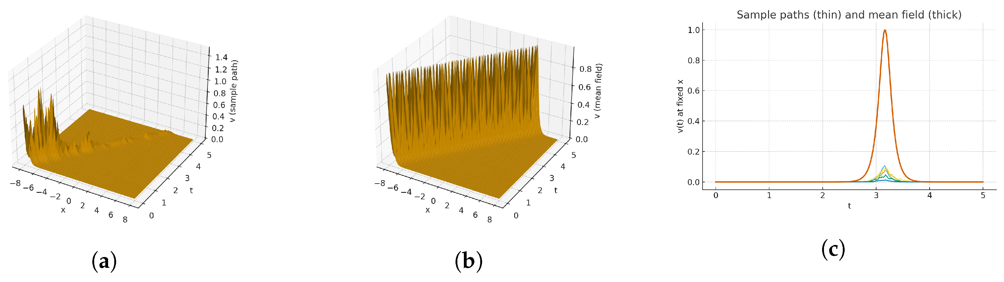 | PresentStudy | Stochastic Kairat-II and Kairat-X (3 + 1D) | Wiener process modeling; modified auxiliary eq.; energy balance | 3D surfaces, sample path vs. mean-field plots, time traces; EBA validation. |