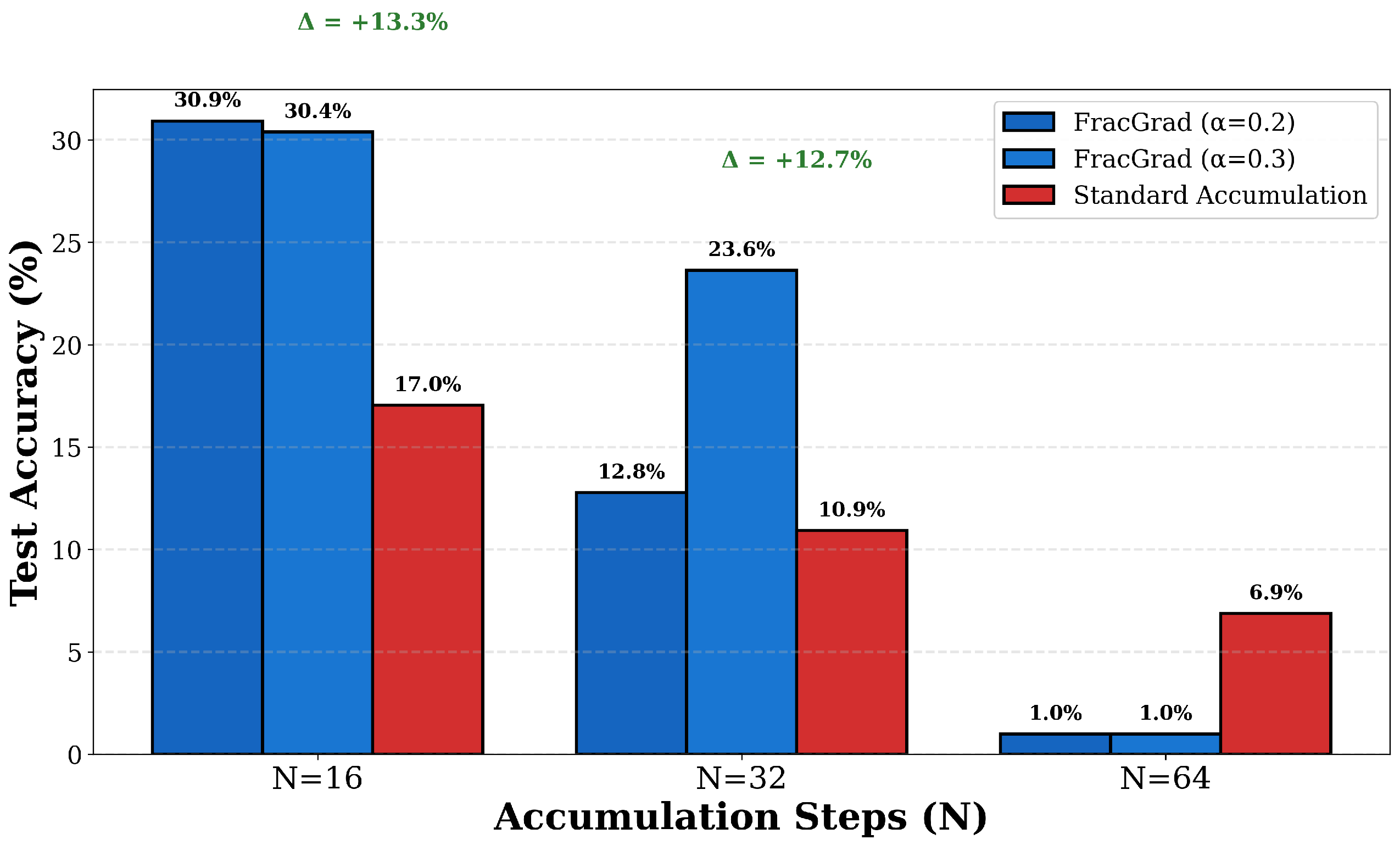 This study formulates Fractional Gradient Accumulation (FracGrad) by replacing the uniform averaging in (