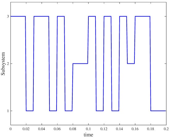 The generator matrix is partly unknown, and the Markovian switching signal is shown in Figure 2.