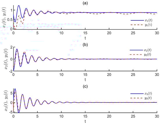 (a–c) The state trajectories of the drive system and the response system with designed controllers in [].