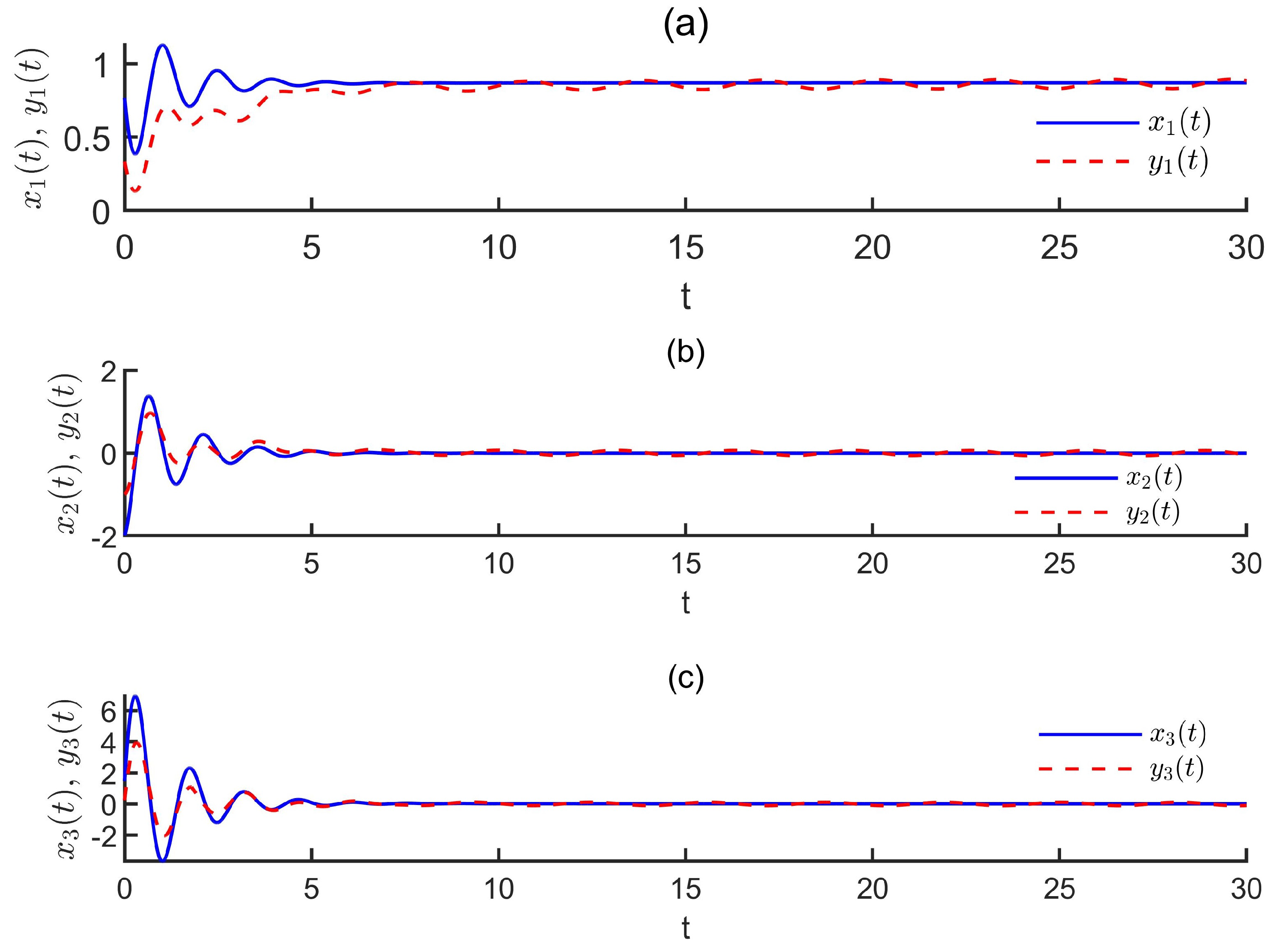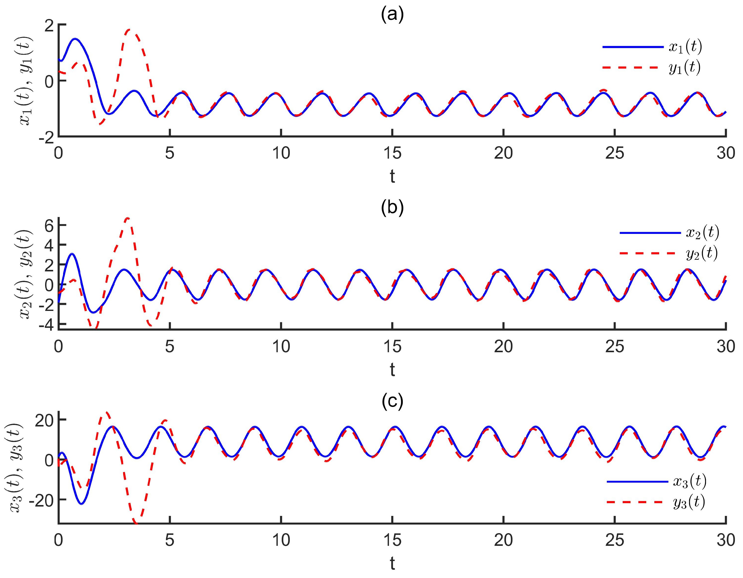 Figure 3, it can be asserted that the synchronization error signals tend to 0 under the proposed controller.