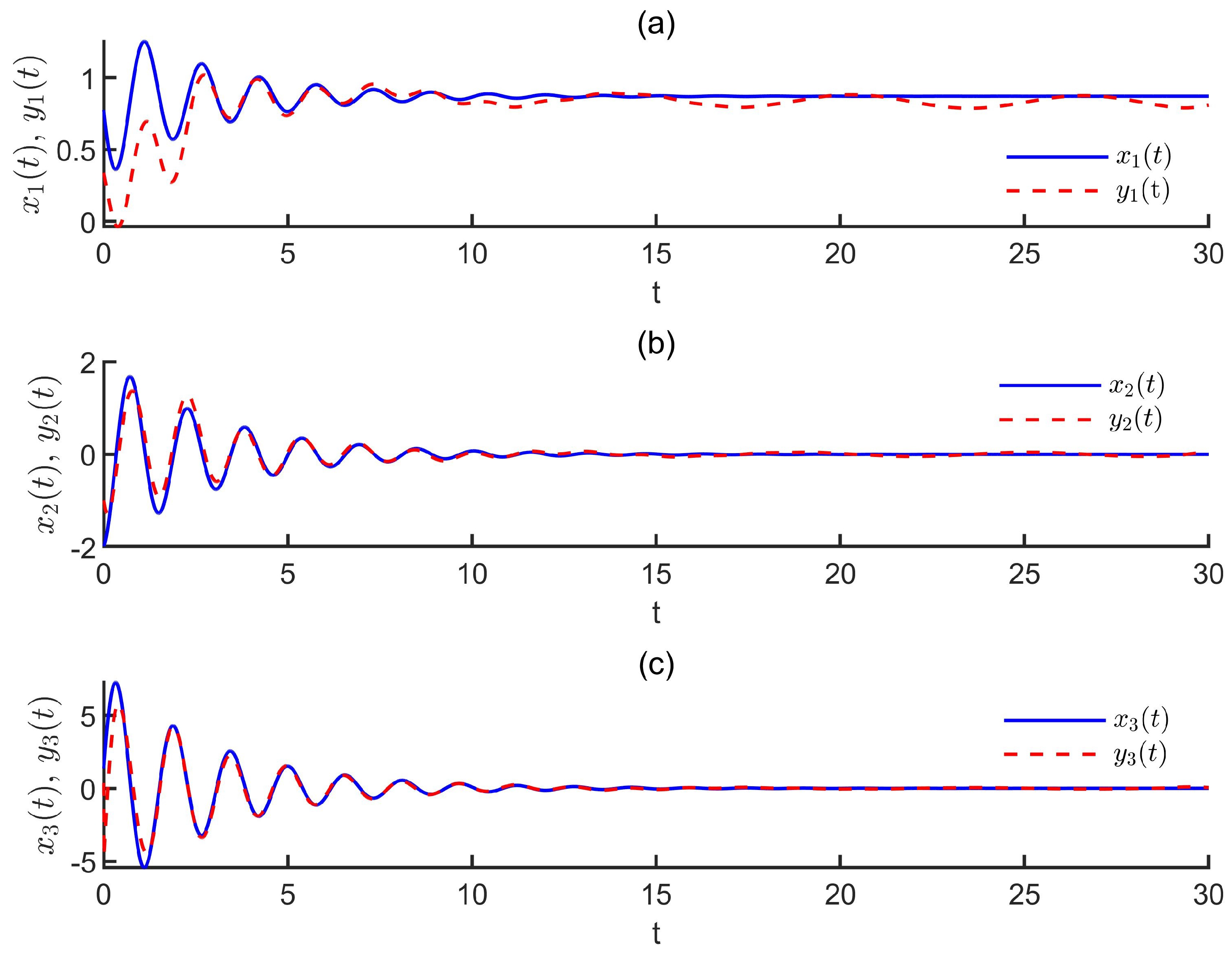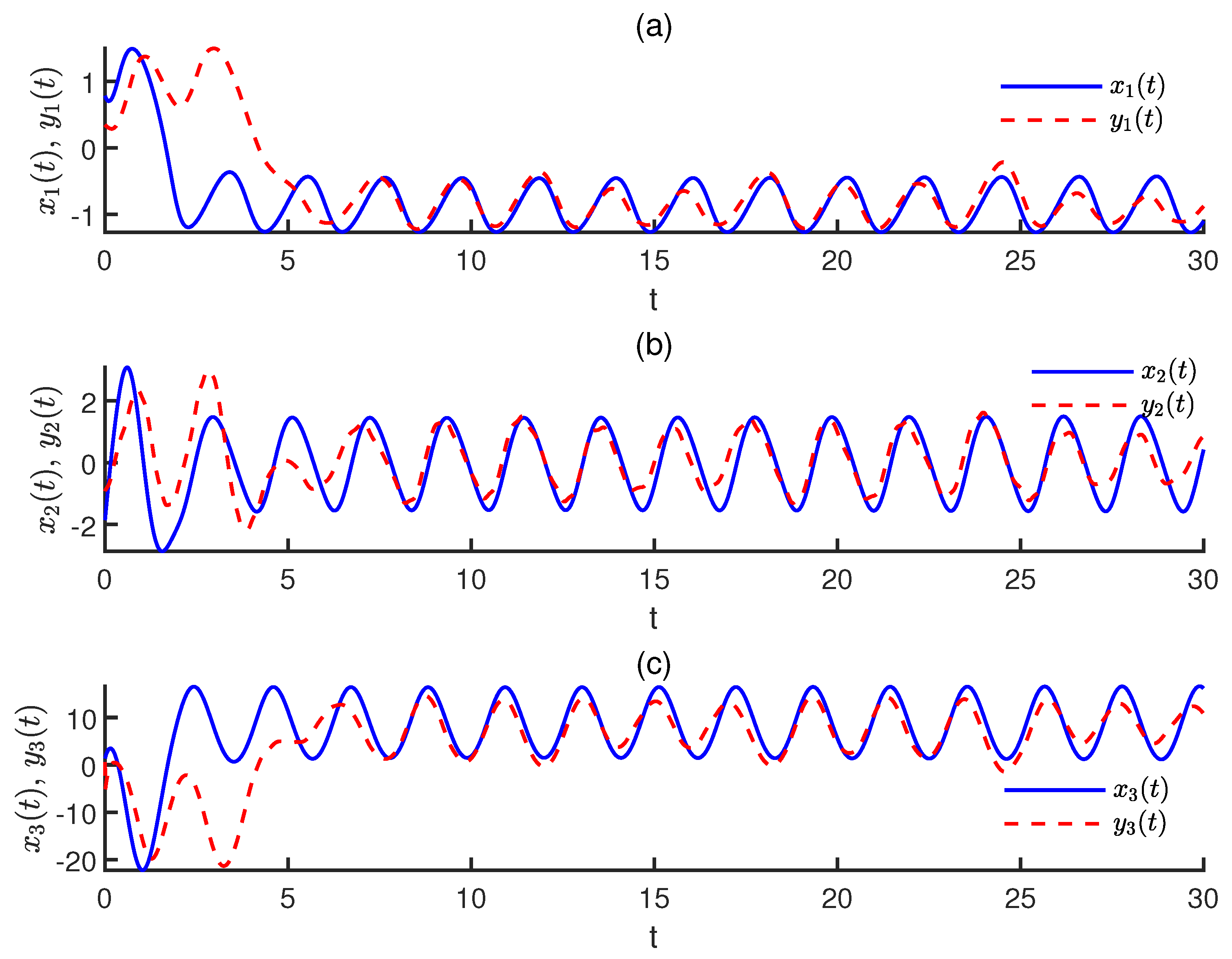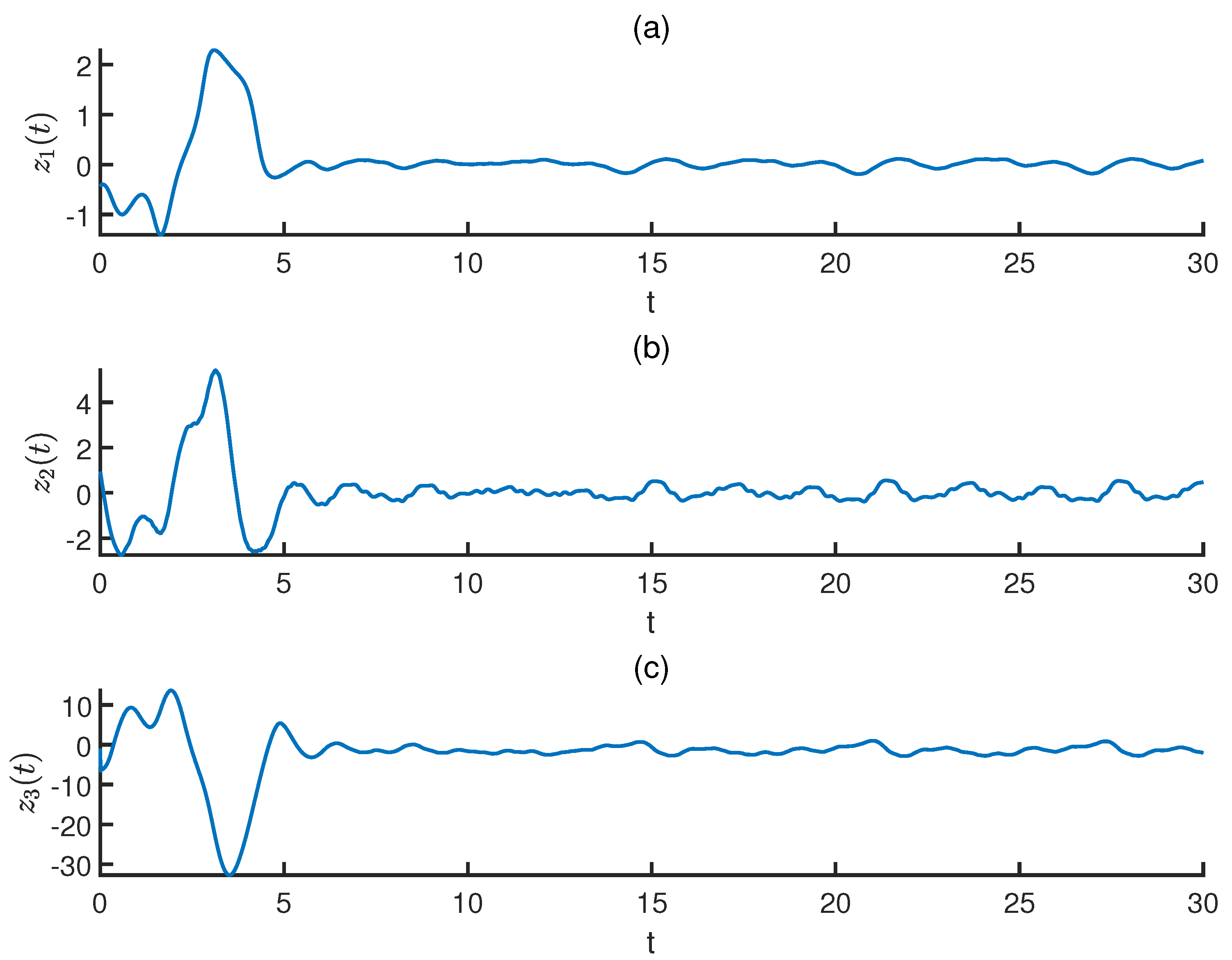 Figure 3 is devoted to demonstrate the trajectories of the synchronization errors. From