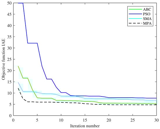 Figure 6 shows the overall schematic diagram of the proposed MPA-based optimized PTFOIDN BLDC control method. Feedback is employed from the speed control difference ( = − to determine the objective function for the control optimization process. The integral absolute error (IAE) is selected in this paper for determining the desired objective function for the optimization process. The IAE is represented as follows:
