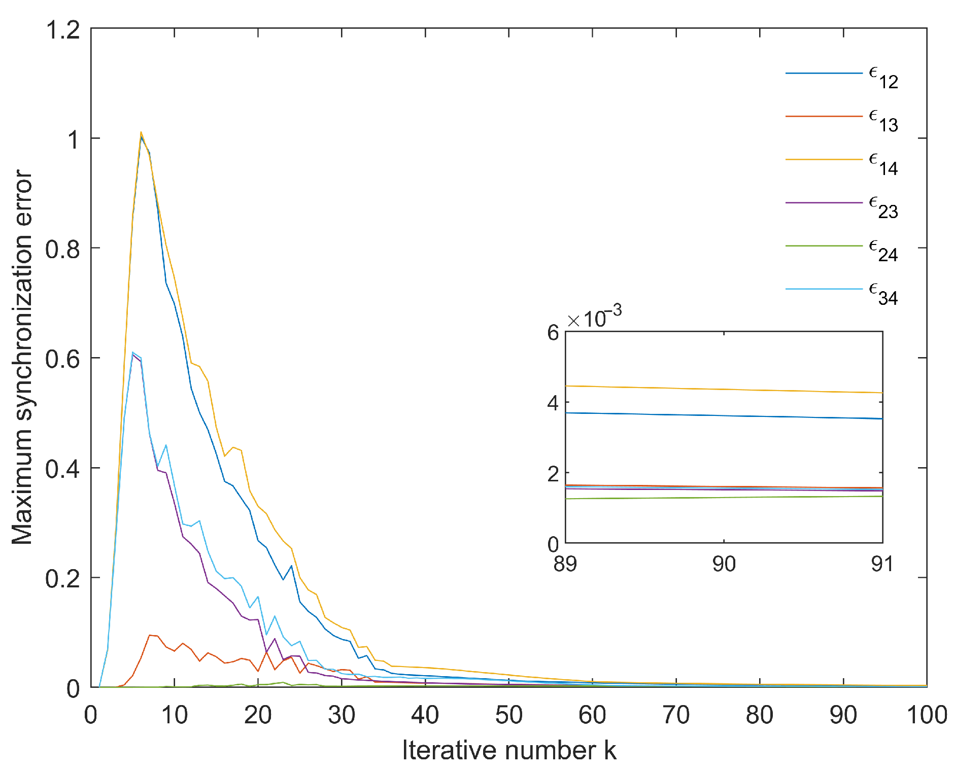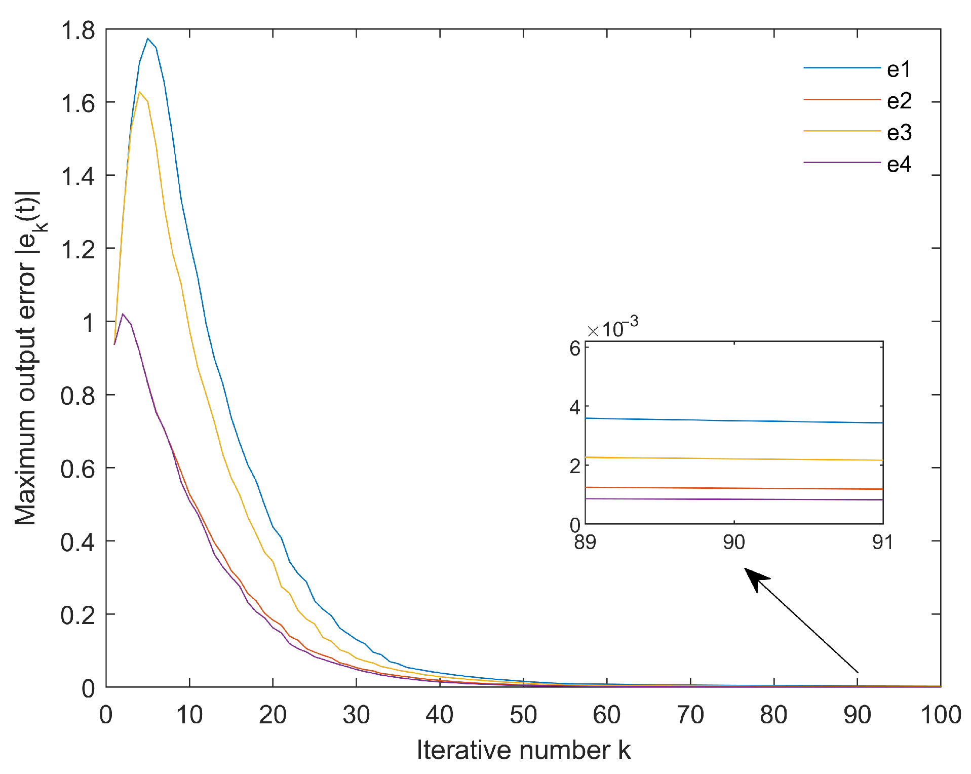 - Zhou, X.; Wang, H.; Tian, Y. Iterative learning control-based tracking synchronization for linearly coupled reaction-diffusion neural networks with time delay and iteration-varying switching topology. J. Frankl. Inst. 2021, 358, 3822–3846. [Google Scholar] [CrossRef]