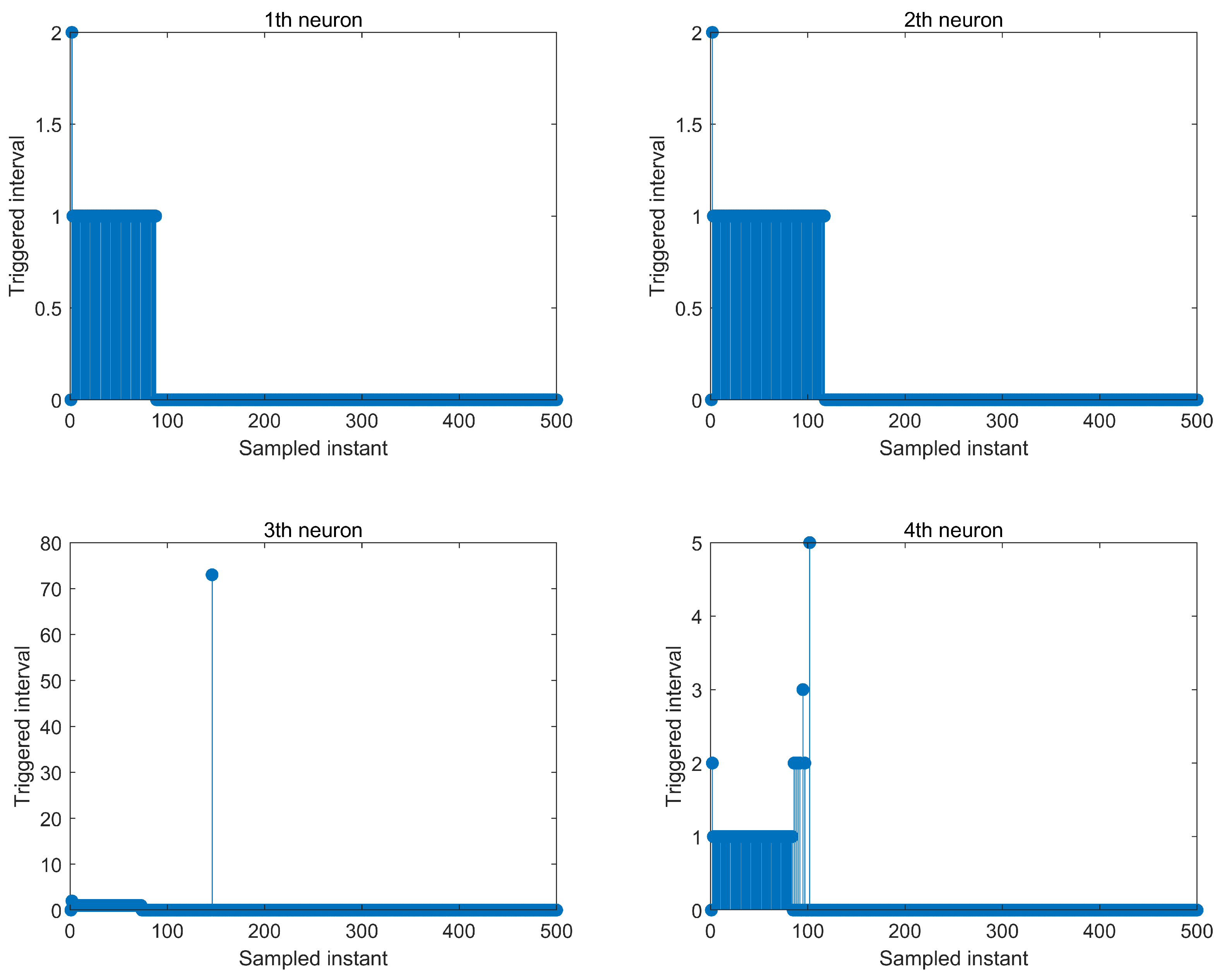 - Feng, J.; Sun, W.; Tang, Z. Quasi-synchronization of heterogeneous neural networks with hybrid time delays via sampled-data saturating impulsive control. Chaos Solitions Fractals 2024, 182, 114788. [Google Scholar]