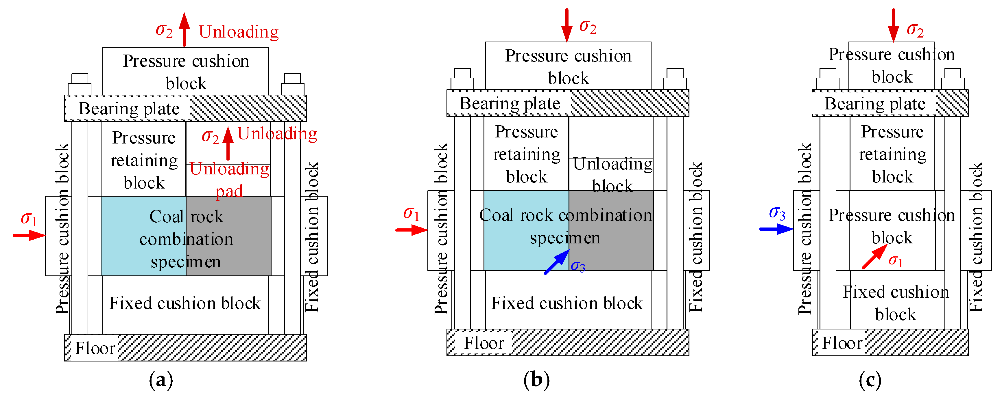 2.1.1. Construction of the True Triaxial Stress Model for Coal–Rock Composites