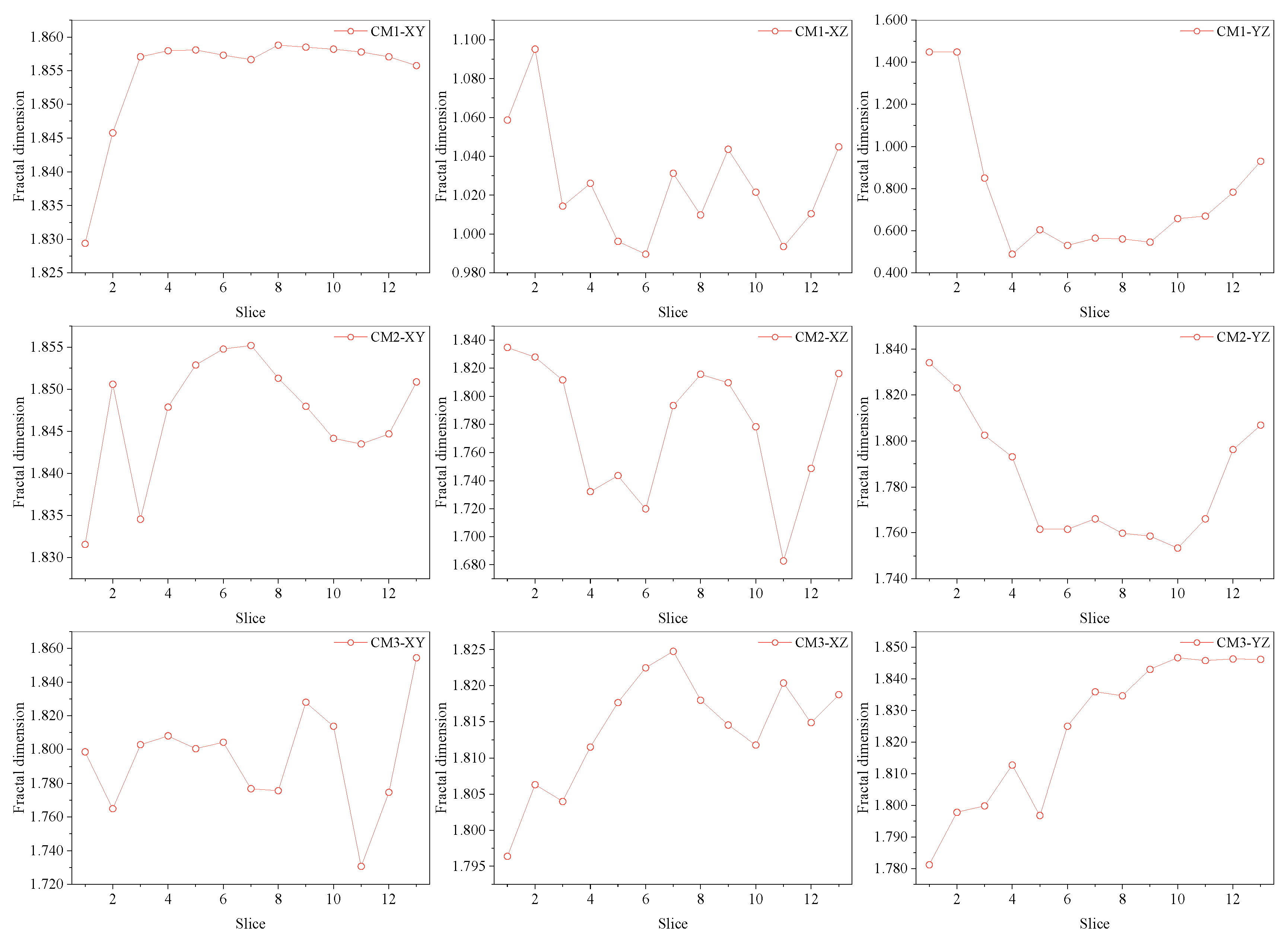 Figure 13. Evolution of Fractal Dimension D for Representative Slices in Different Directions of Coal Specimens.