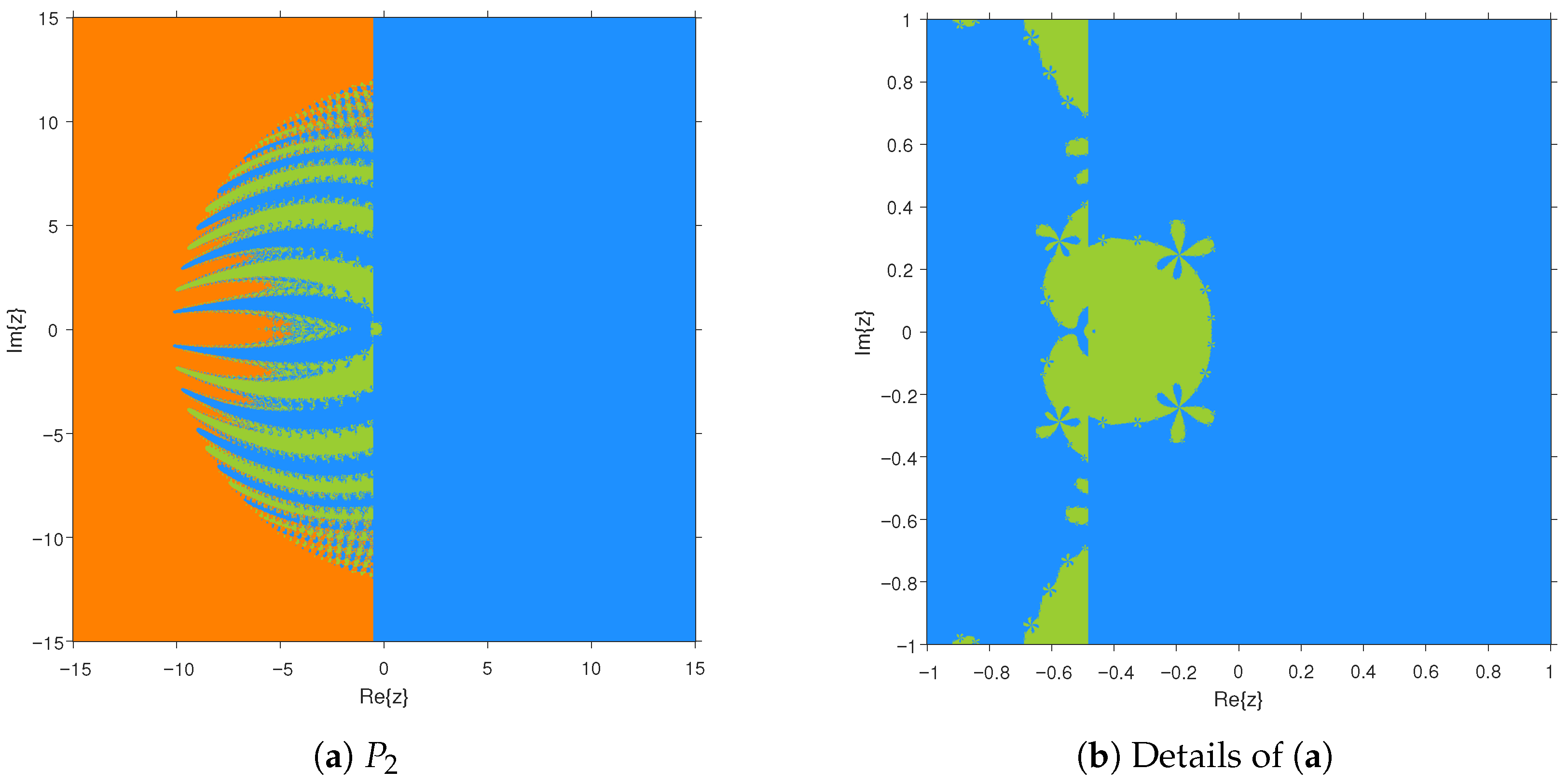 - Chicharro, F.I.; Cordero, A.; Torregrosa, J.R. Drawing dynamical and parameters planes of iterative families and methods. Sci. World J. 2013, 2013, 780153. [Google Scholar] [CrossRef] [PubMed]