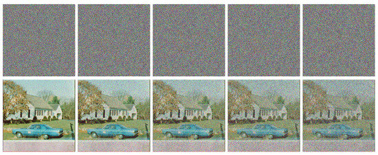 To simulate noise attacks, we added salt-and-pepper noise at five different densities (0.01, 0.03, 0.05, 0.07, and 0.09) to the ciphertext of image 4.2.07. The noisy ciphertexts are displayed in the first row of Figure 13 and were then decrypted. As the decrypted results show, the image remains visually clear at lower noise densities (<0.05). Although image quality degrades as the noise density increases, the main visual content remains recognizable even at the highest level of 0.09. This demonstrates the IEA-VMFD’s strong robustness against noise attacks.