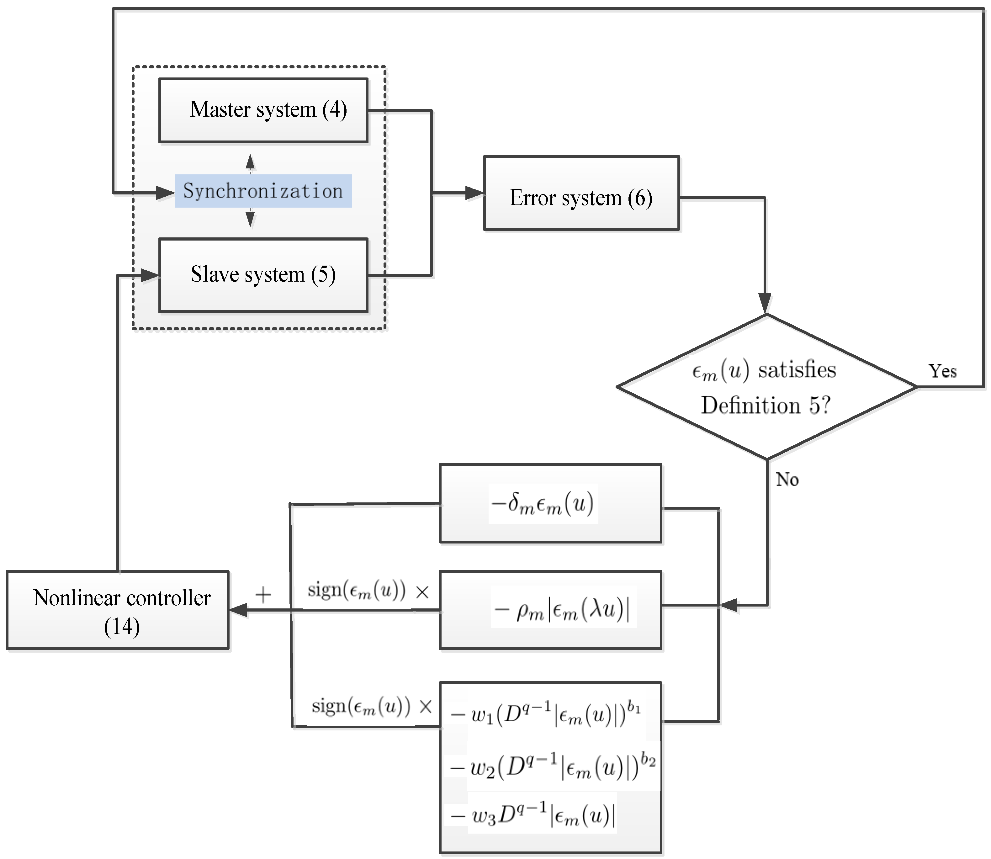 Remark 3. Finite-time synchronization tasks of fractional-order NNs have been studied in [33,34,35]. In contrast, fixed-time synchronization is a significant development of finite-time synchronization, ensuring that the primary and secondary systems synchronize within a unified time range, and the synchronization results are independent of initial states. The fixed-time synchronization results are particularly suitable for scenarios with strict convergence-time requirements, such as multi-agent systems, drone formations, and robot collaboration. For example, in a drone swarm performing collaborative reconnaissance or material transport, all units must achieve highly consistent posture, position, and velocity information. By treating each drone as a dynamical subsystem, a multi-mode controller can be designed to synchronize the entire swarm within a fixed time, ensuring timely and coordinated task execution. Remark 4. In [30,31], various dynamic behaviors of fractional-order Hopfield NNs have been studied using methods such as bifurcation diagrams and Lyapunov exponent analysis. In [32], fractional-order Hopfield NNs have been applied to achieve medical image encryption. In contrast, this work investigates a more general model that incorporates both unbounded proportional delay and bounded uncertainties, thereby addressing a broader and more practical class of systems. Lemma 2 ([