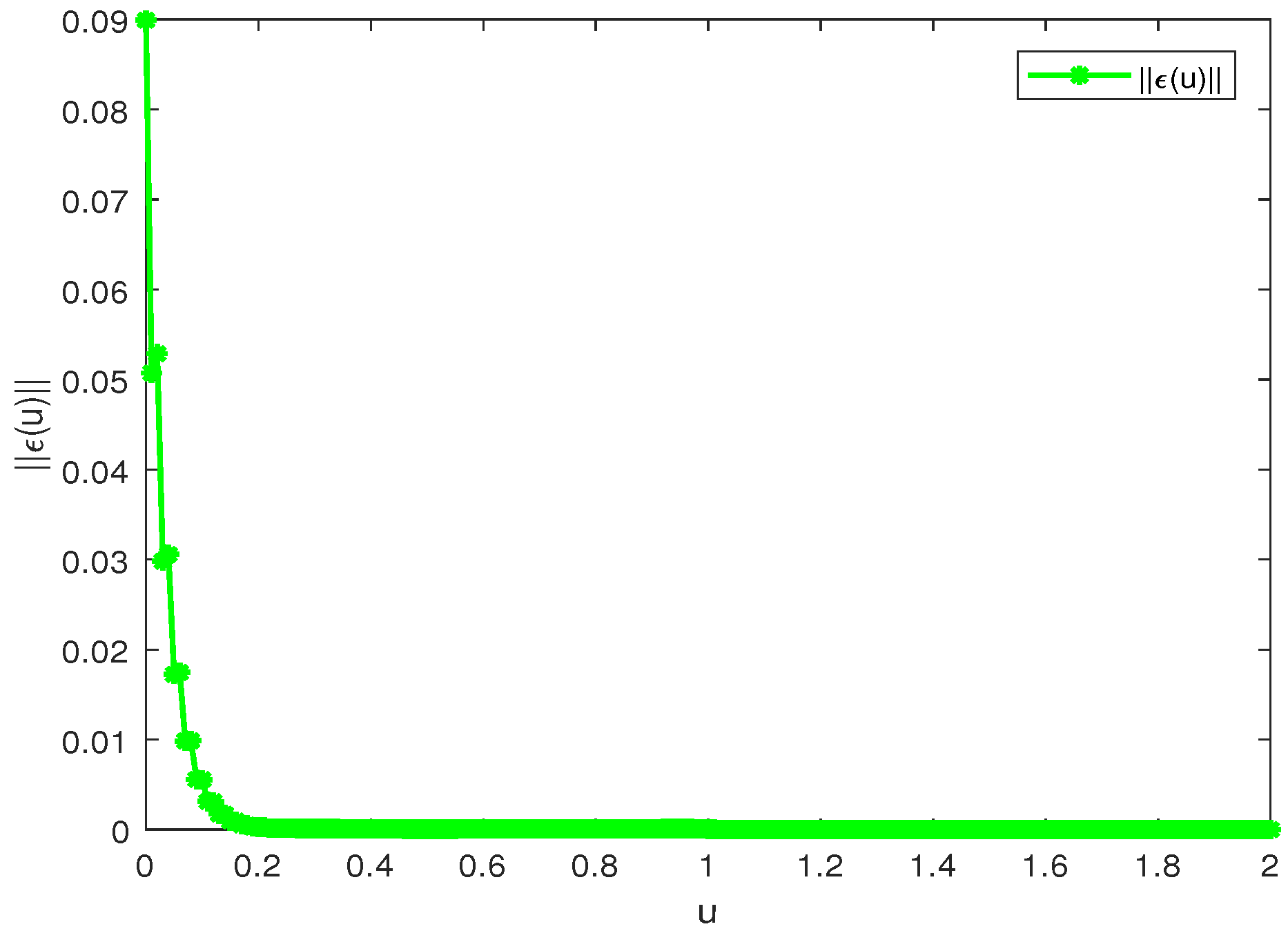 Example 2. Consider 2-dimensional fractional PDHNNs without uncertainties as the primary system, described as follows: Then, the consequential secondary system can be given bywhere , , . The activation functions are , which satisfy Assumption 1 for . Let parameters , and . Through simple calculations, one can get , , , and .