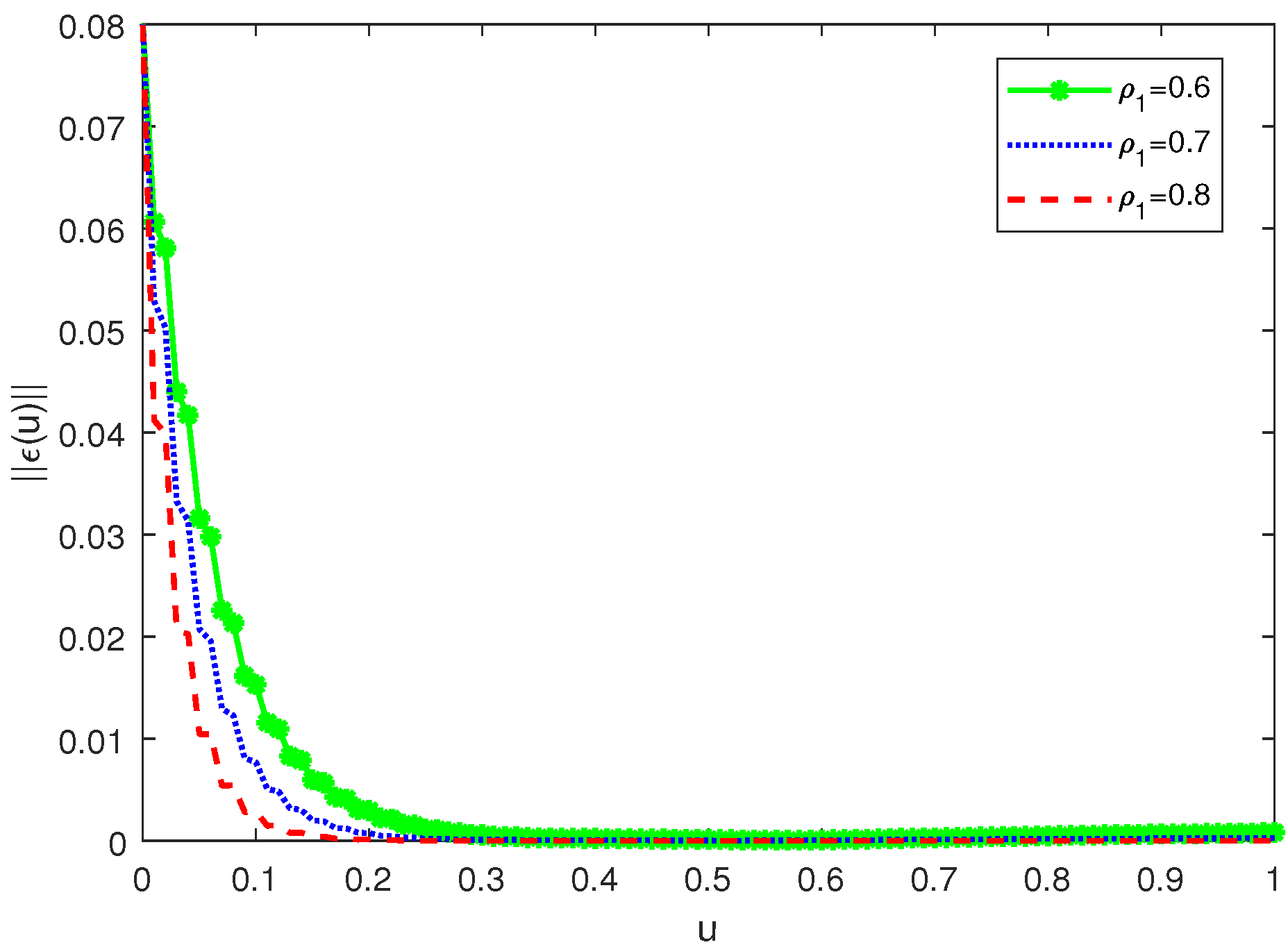 Remark 10. For the numerical simulation of fractional-order delayed systems, we employ the Adams–Bashforth–Moulton method [54] to solve the differential equations within the MATLAB R2020b environment. The implementation involves two key steps. First, the time domain is uniformly discretized, and the product rectangle formula is applied to estimate the fractional-order integral, yielding an initial approximate solution (the predictor). Subsequently, a corrected solution is computed using the product trapezoidal formula, which refines the initial estimate for higher accuracy (the corrector). The predictor-corrector steps ensure the robustness and accuracy of the simulation results.
