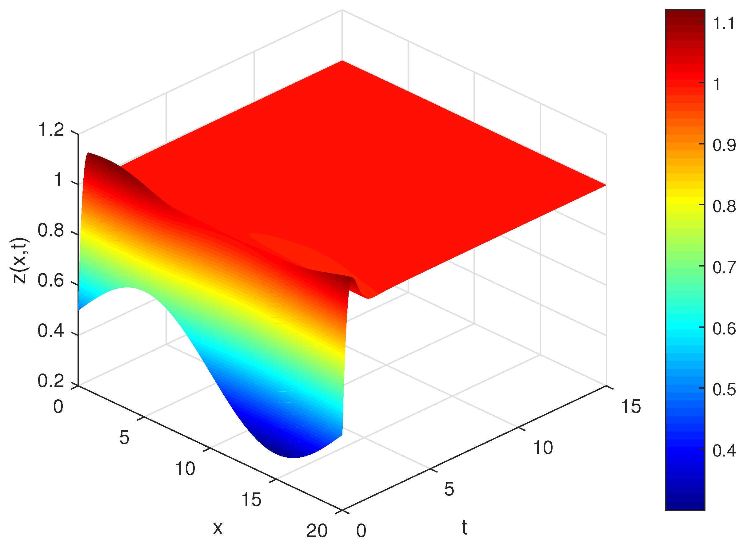 Figure 1, Figure 2, Figure 3, Figure 4, Figure 5, Figure 6, Figure 7 and Figure 8 reveal that incommensurate memory accelerates diffusion-induced damping and broadens transient oscillation zones. Physically, this reflects how heterogeneous enzymatic memory modifies concentration gradients and delays pattern formation, consistent with observed anomalous diffusion in glycolytic media. Figure 7 and Figure 8 depict the spatio-temporal surfaces and the convergence trajectories. Compared to the commensurate case, the convergence is smoother but delayed, highlighting the interplay between fractional order, diffusion, and nonlinearity. Numerical Implementation and Validation