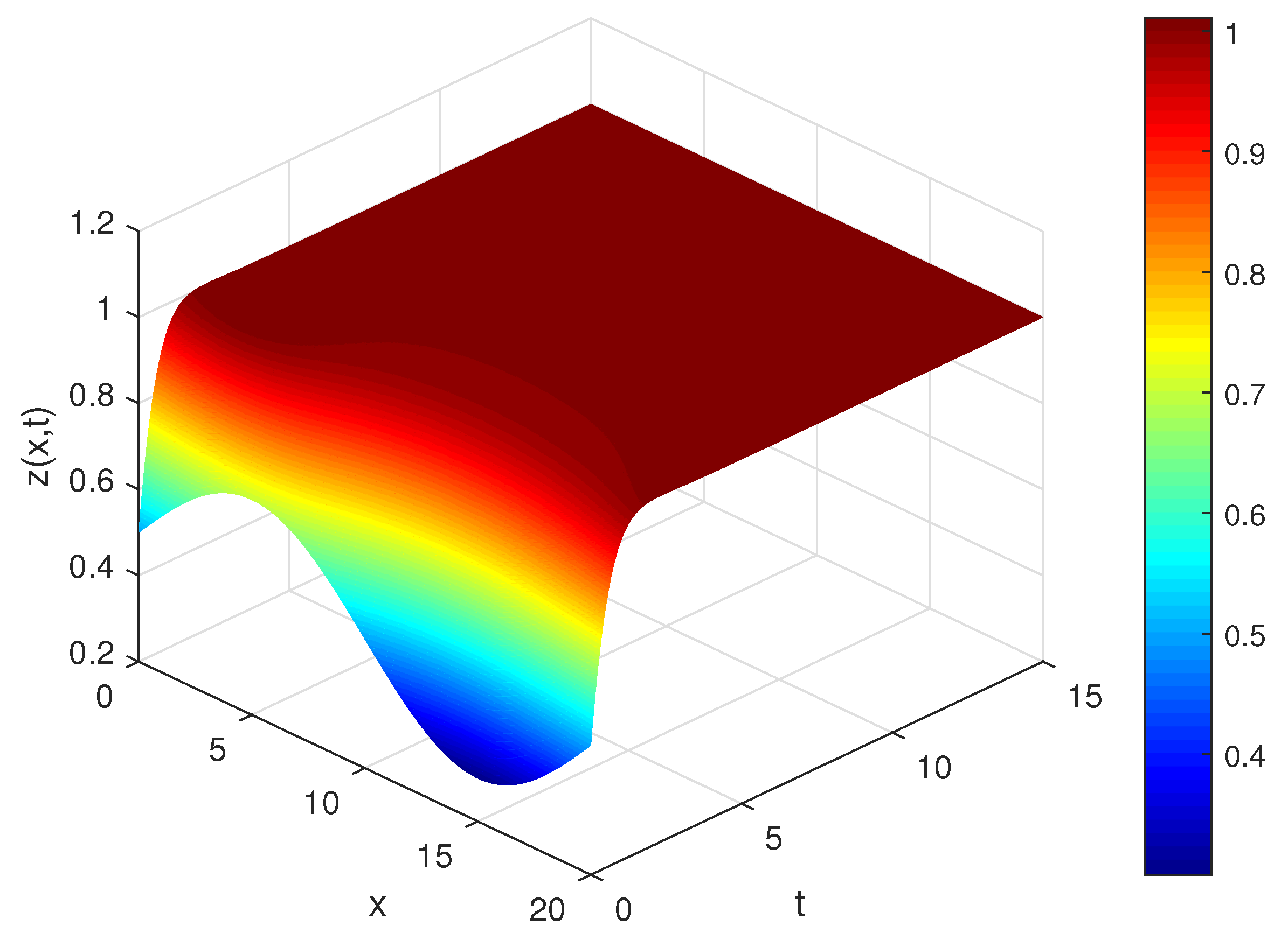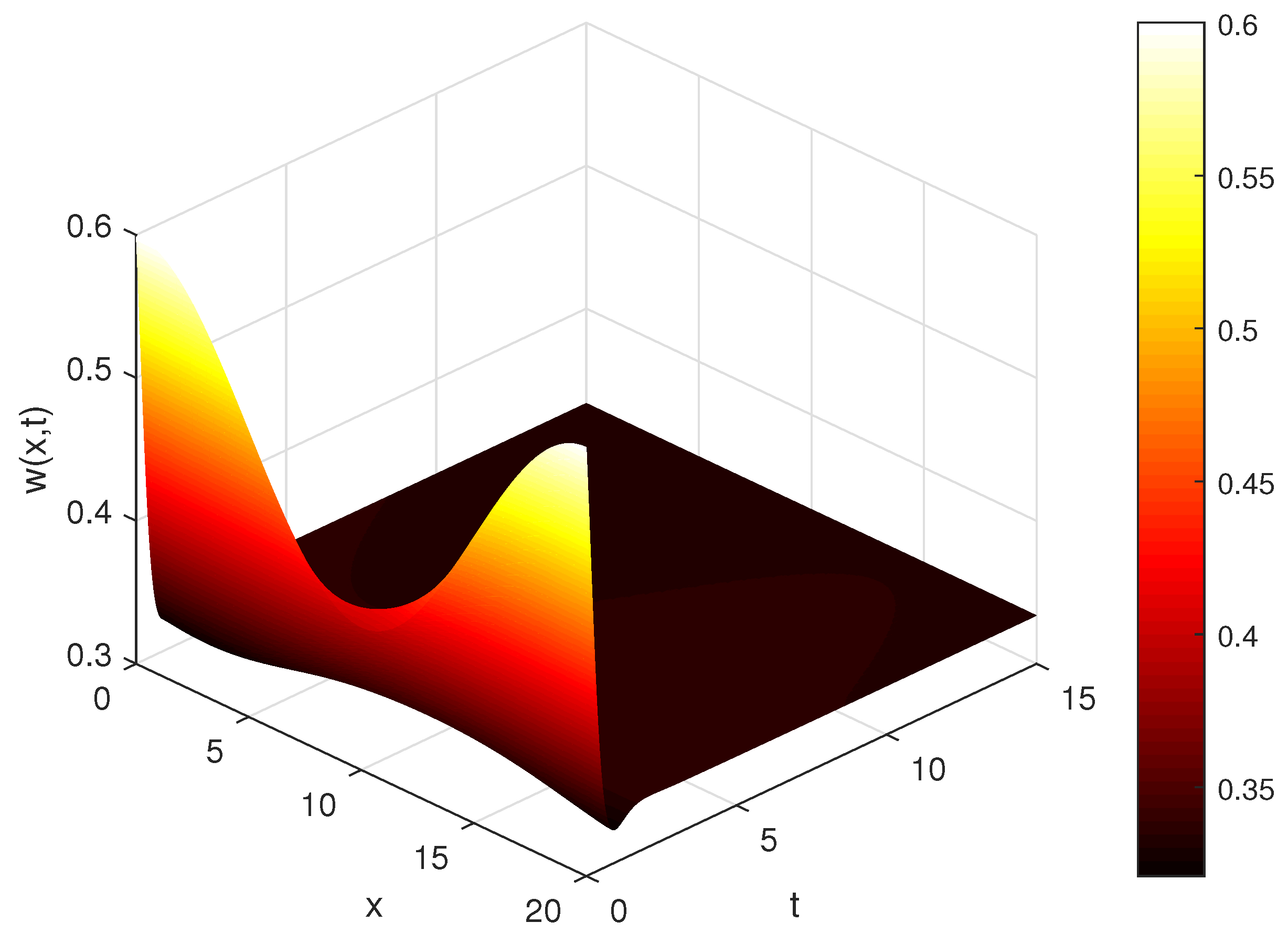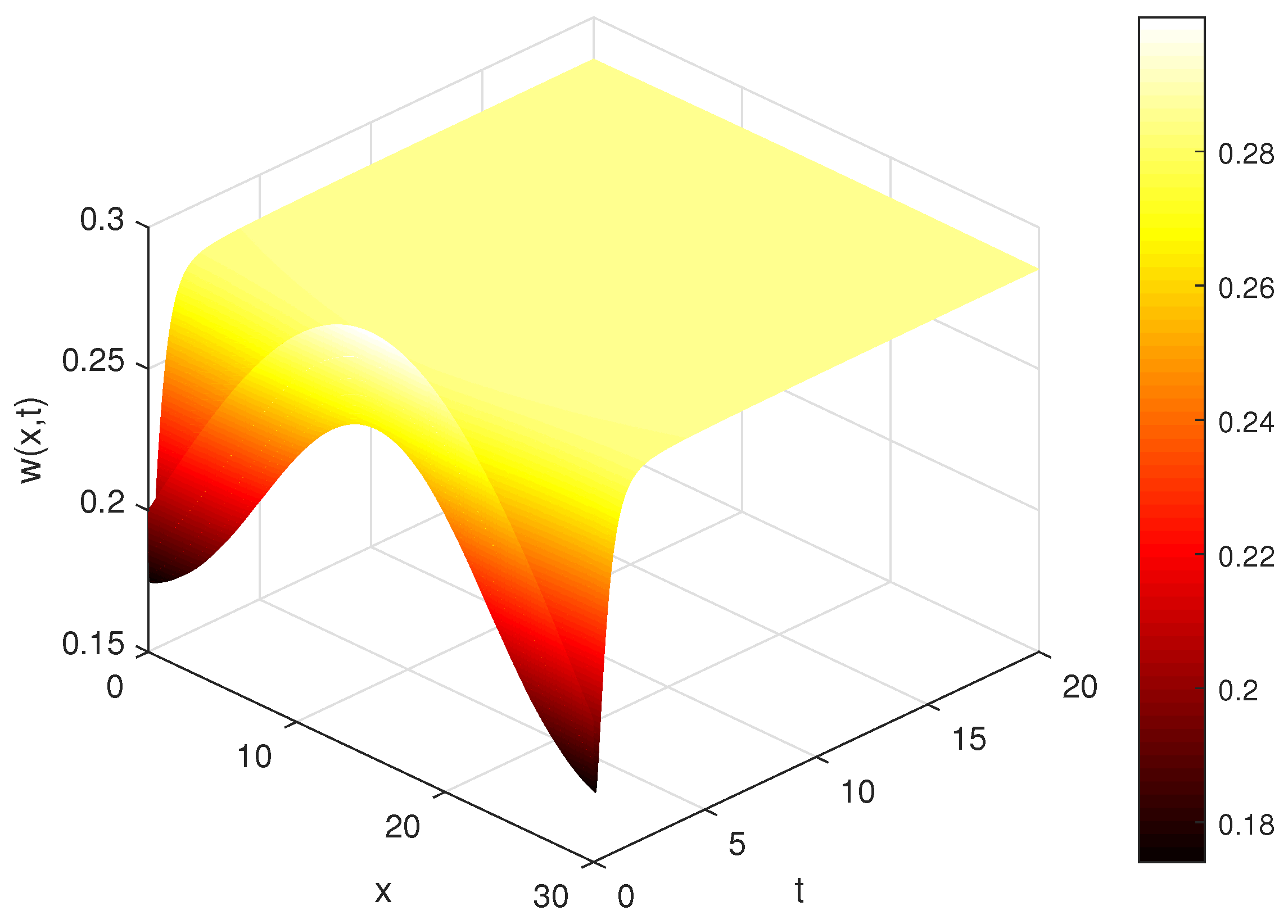 Convergence and numerical stability: The L1 scheme is known to have a global truncation error of order for sufficiently smooth solutions, while the spatial discretization is second order, . To verify the implementation, we halved both and and computed the difference in the maximum norm between successive grids. For the parameter set , the refinement tests yielded and , confirming convergence within the target tolerance. The chosen timestep satisfies the empirical stability requirement for the explicit scheme used.