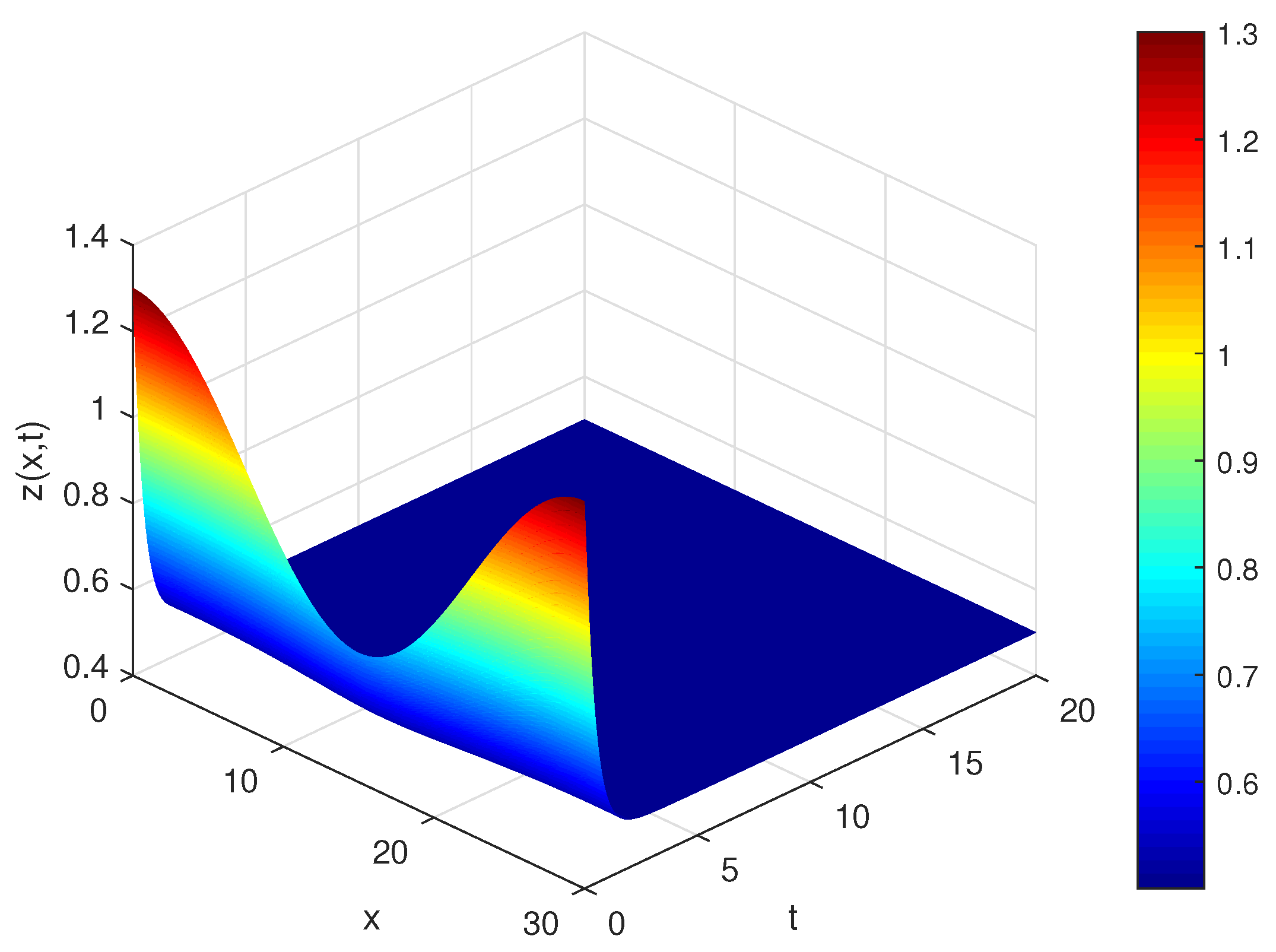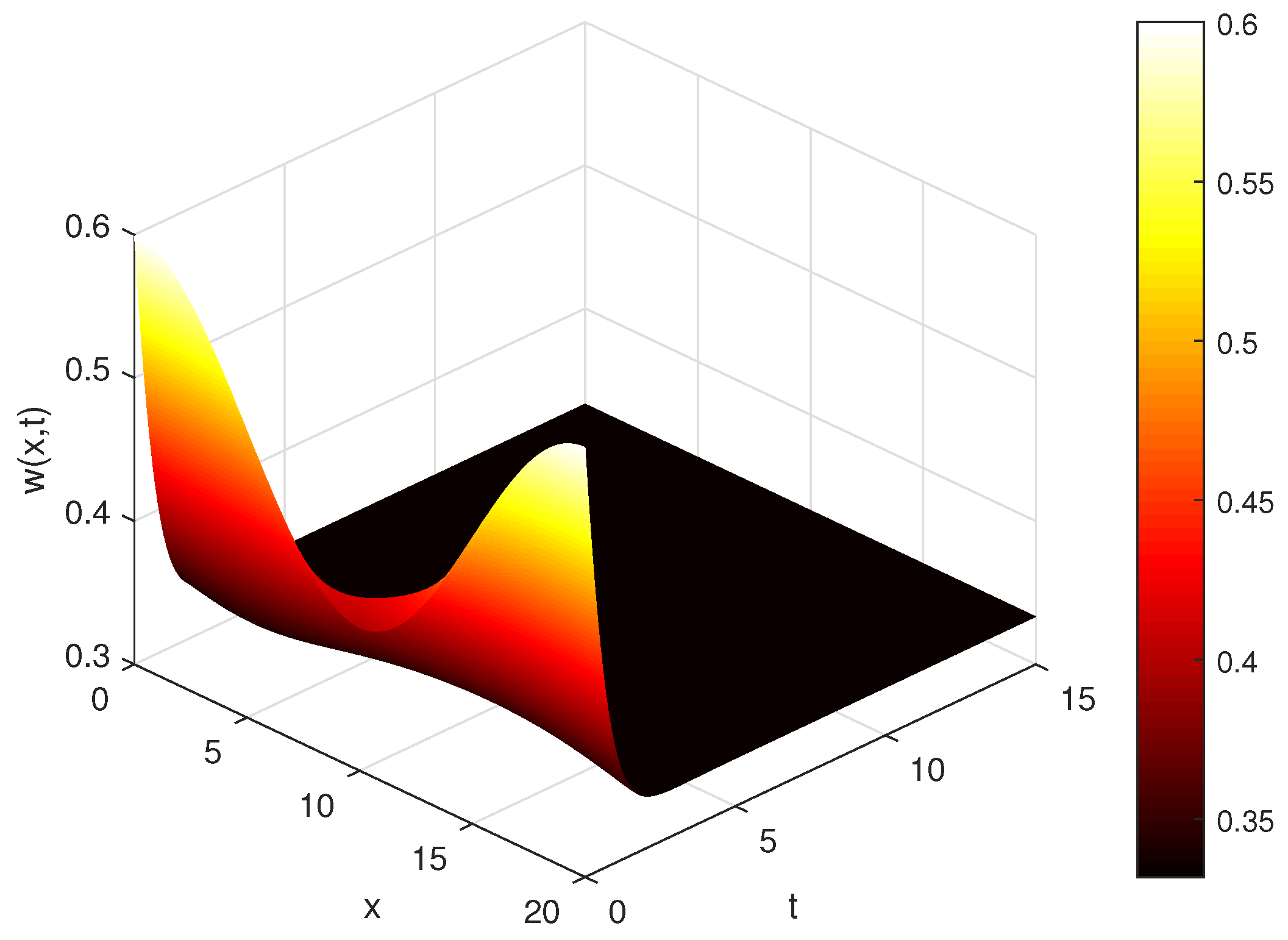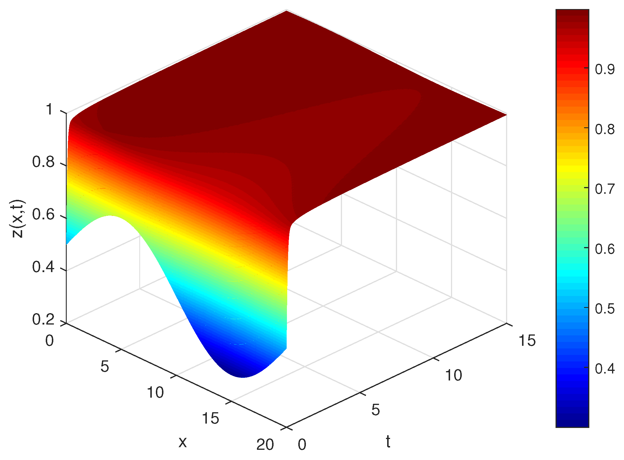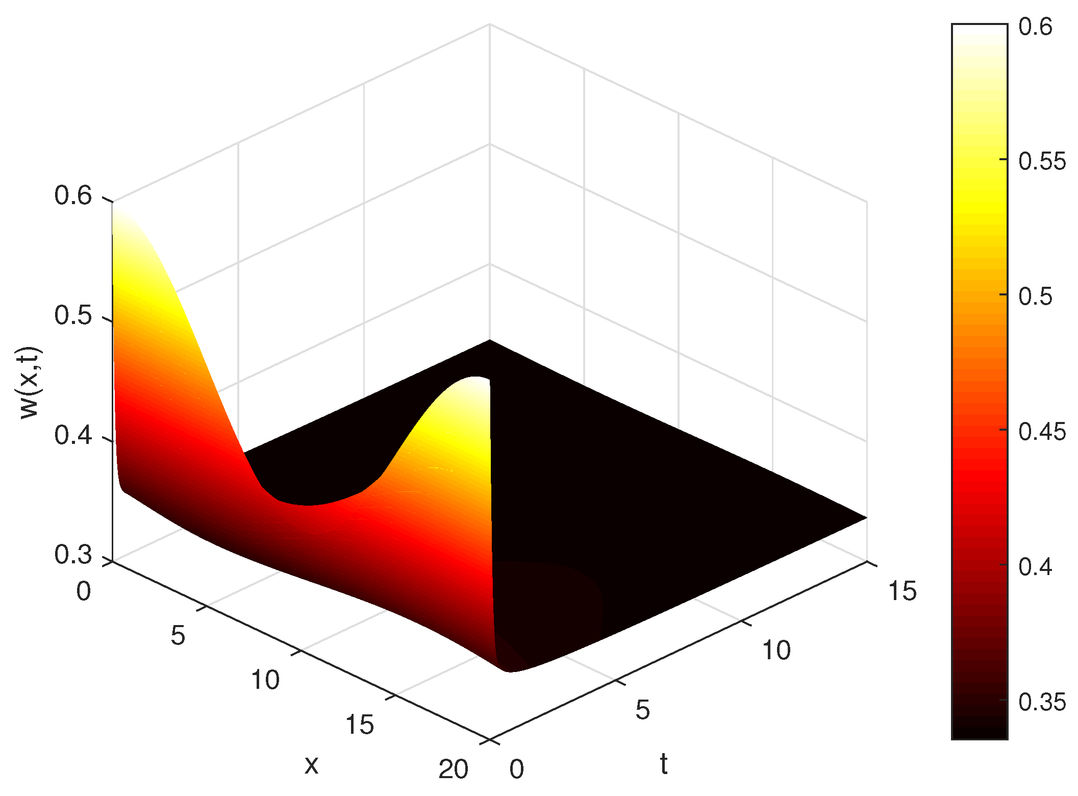 Convergence and numerical stability: The L1 scheme is known to have a global truncation error of order for sufficiently smooth solutions, while the spatial discretization is second order, . To verify the implementation, we halved both and and computed the difference in the maximum norm between successive grids. For the parameter set , the refinement tests yielded and , confirming convergence within the target tolerance. The chosen timestep satisfies the empirical stability requirement for the explicit scheme used.