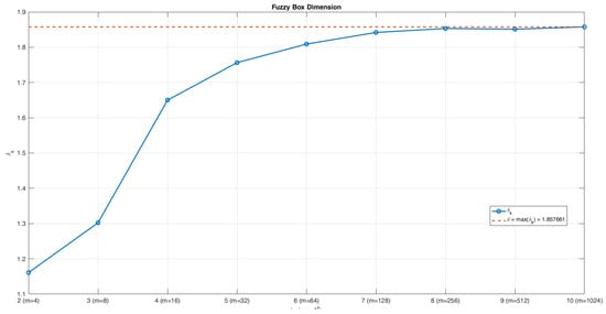 gives us the approximate box dimension of a fuzzy Mandelblog set