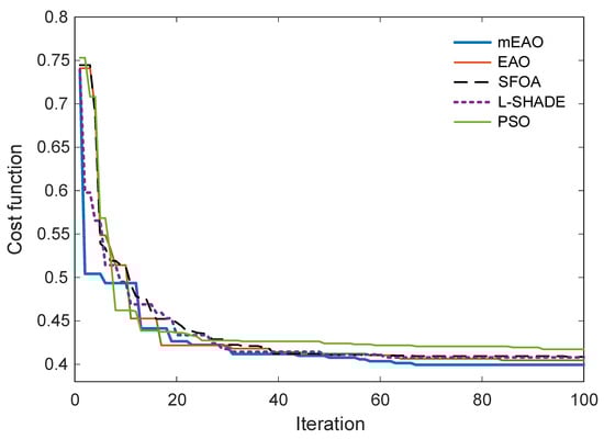 - Tanabe, R.; Fukunaga, A.S. Improving the search performance of SHADE using linear population size reduction. In Proceedings of the IEEE Congress on Evolutionary Computation, Beijing, China, 6–11 July 2014; IEEE: Piscataway, NJ, USA, 2014. ISBN 9781479914883. [Google Scholar]